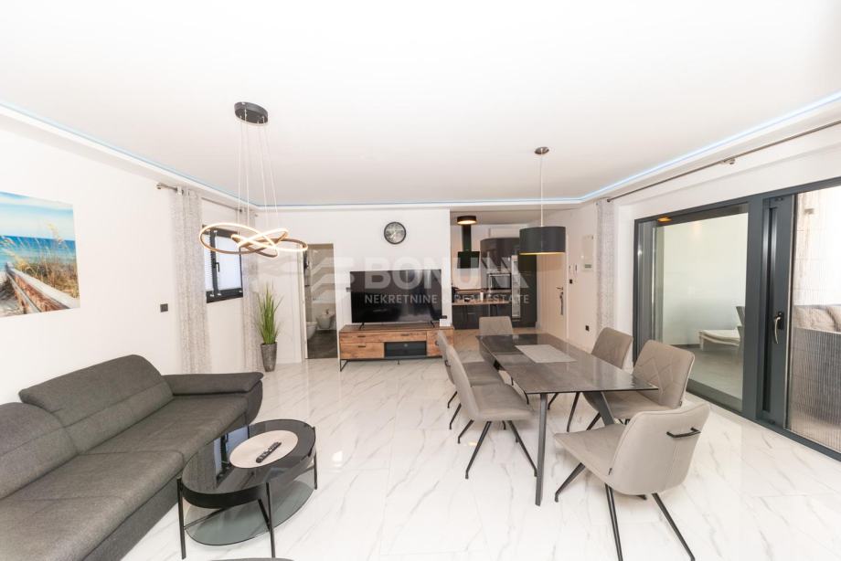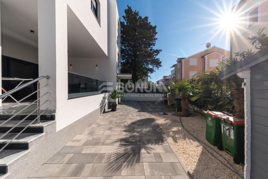 Prodaje se prekrasna kuća u Srimi, udaljena svega 50 metara od mora i pješčane plaže. Smještena na mirnoj i atraktivnoj lokaciji, ova moderno uređena i potpuno namještena nekretnina idealna je kao investicija za turistički najam ili kao obiteljska kuća za odmor uz more.