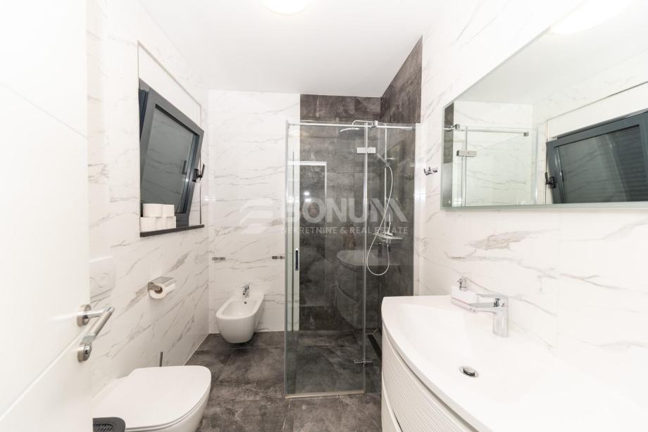 Prodaje se prekrasna kuća u Srimi, udaljena svega 50 metara od mora i pješčane plaže. Smještena na mirnoj i atraktivnoj lokaciji, ova moderno uređena i potpuno namještena nekretnina idealna je kao investicija za turistički najam ili kao obiteljska kuća za odmor uz more.