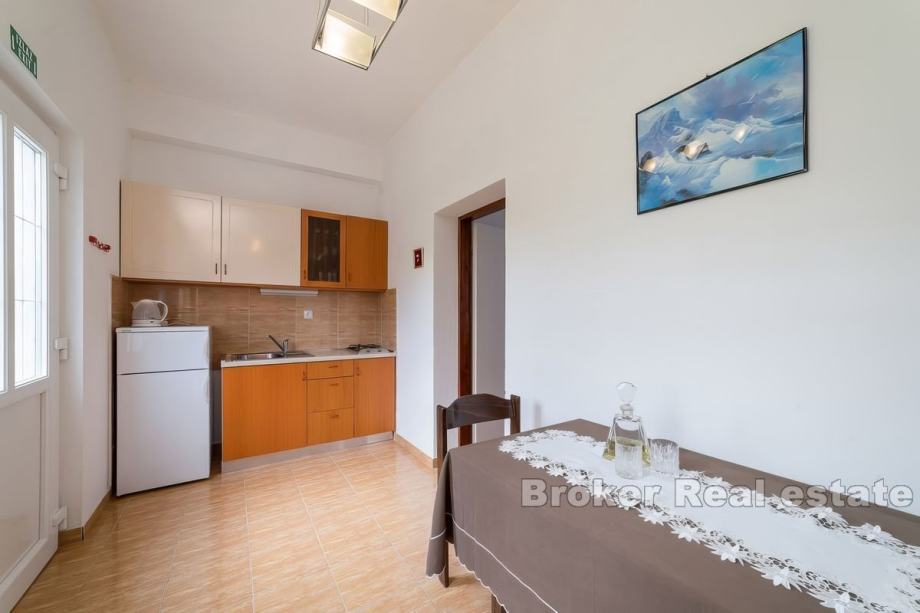 Apartmanska kuća smještena u malom turističkom mjestu, tek 30 metara od mora.