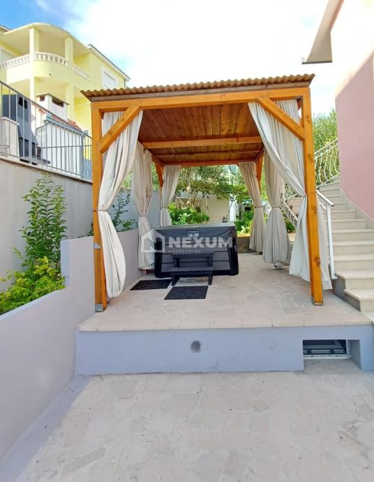 * Prizemlje: Prostrana stambena jedinica koja se sastoji od kuhinje i blagovaonice, dnevnog boravka, spavaće sobe, spreme i kupaonice. Ima izlaz na istočnu, natkrivenu terasu uz predivan vrt sa fontanom. Idealno za druženje, opuštanje ili posluživanje doručka gostima, a u sklopu terase su smješteni gostinjski toalet i spremište. Na drugoj terasi zapadno uz kuću nalazi se i jacuzzi, savršen detalj za potpuni ugođaj.