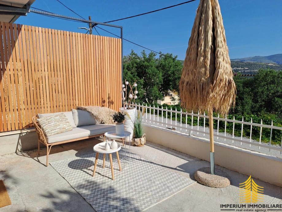 - Prvi kat: Dvosoban stan s potpuno opremljenom kuhinjom i velikim balkonom opremljenim kaminom, savršenim za uživanje u prekrasnom pogledu na more i ljetnim večerima.