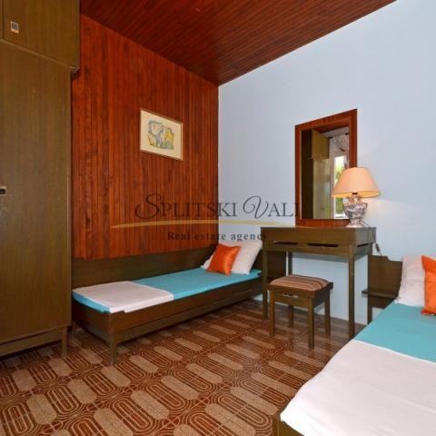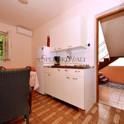 U mirnoj okolici Trogira, svega minutu hoda od mora, smještena je kompletno opremljena kuća s pet apartmana, idealna za turistički najam ili miran obiteljski život uz more. Objekt se nalazi na parceli od 577 m² i nudi izniman potencijal, uključujući mogućnost nadogradnje još jednog kata. U prizemlju su smještena tri apartmana, dok se na katu nalaze još dva, a svaki ima izlaz na verandu s prekrasnim pogledom na more. Kuća raspolaže garažom za jedno vozilo uz dodatnu mogućnost parkiranja oko kuće, vanjskim tušem, kaminom te lijepo uređenim kaskadnim vrtom. Prostrana okućnica s travnatom površinom omogućuje jednostavnu izgradnju bazena i dodatnih sadržaja za potpuni mediteranski ugođaj. Lokacija nudi savršenu ravnotežu između mira i dostupnosti sadržaja, s autobusnom stanicom udaljenom svega 20 metara, lučicom za brodove na 50 metara, restoranom na 100 metara i trgovinom na 150 metara. Centar Trogira udaljen je samo 3 kilometra, što ovu nekretninu čini izvrsnim izborom za ugodan boravak i investiciju.