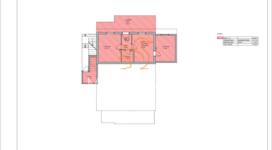 Apartman 1 u SUTERENU ZGRADE ukupne veličine 65m2 sastoji se od: