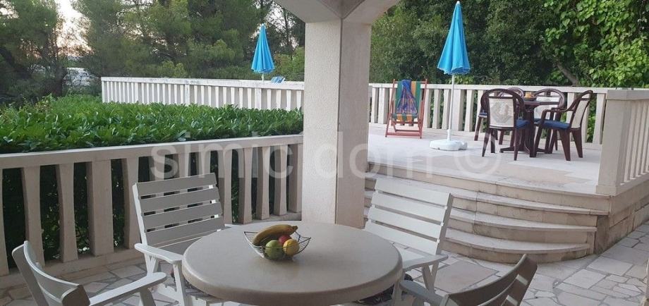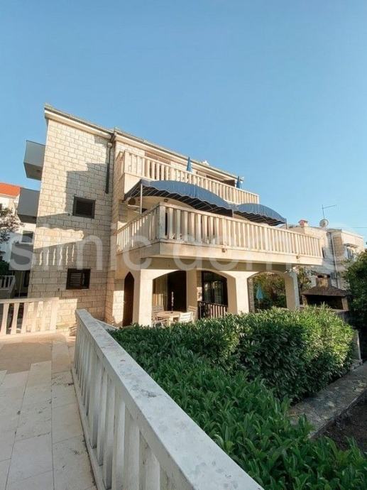 Apartmanska kuća na odličnoj lokaciji, Supetar Posredujemo u prodaji kuće koja se sastoji od šest odvojenih apartmanskih jedinica, a nalazi se u odličnoj zoni u Supetru na Braču, cca 150 metara od mora. Kuća površine 345 m2 smještena je na parceli od 616 m2, s okućnicom od 454 m2, s gospodarskim objektom i garažom od 37 m2. Prostrani dvosobni apartman nalazi se u prizemlju. Na prvom katu kuće nalaze se tri jednosobna apartmana. Na drugom katu nalaze se još dva dvosobna apartmana. Svaka etaža i svaka stambena jedinica imaju zaseban pristup i ulaz, a nekretnina se prodaje potpuno namještena i opremljena. Prostrana parcela nudi lijepi mediteranski vrt, vanjski dnevni boravak i sunčalište. Nekretnina predstavlja uhodan posao kad je u pitanju turistički najam. Vlasništvo čisto.