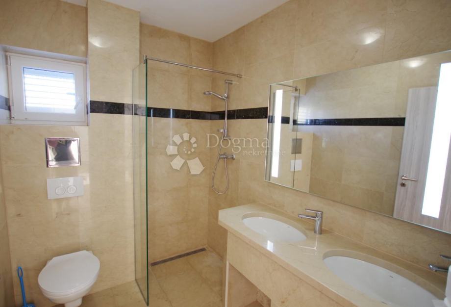 Kuća je izgrađena 2018.godine, korišteni su visokokvalitetni materijali kao što je masivni mramor, prirodni kamen u cijelom stanu te drveni parket u spavaćim sobama.