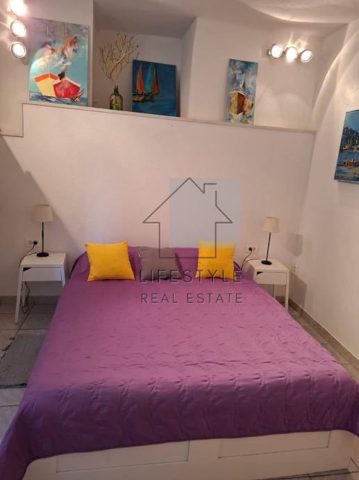 Kuća je smještena u mirnoj ulici, svega 5 minuta hoda do mora. U neposrednoj blizini nalaze se svi bitni sadržaji; pošta, banka, trgovine, škola, vrtić i ambulanta.
