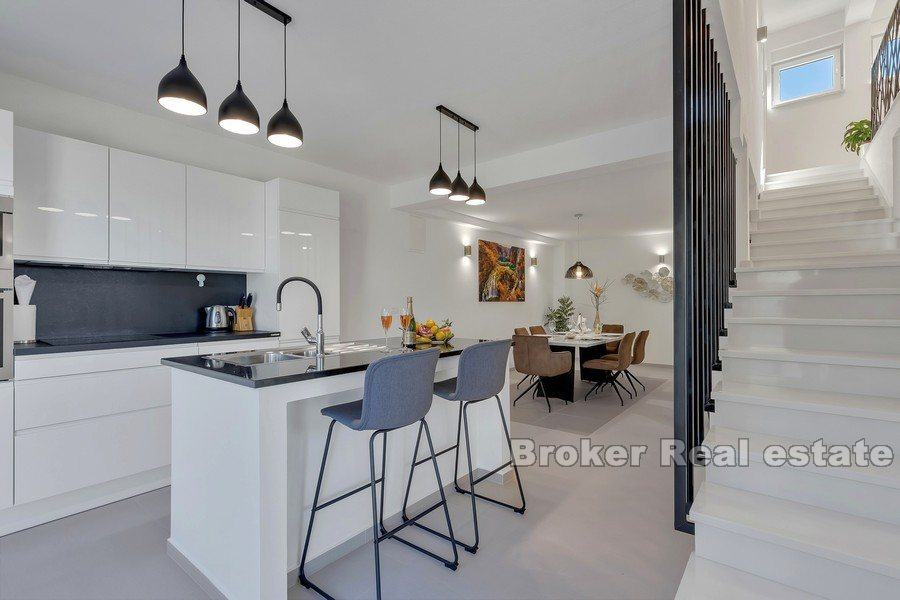 Opremljena je kvalitetnim namještajem i materijalima, Daikin kuhinjama, Rabalux rasvjetom, podno grijanje, PVC stjenke sa zatamljenim staklima, unutarnje stepenište od granita, vanjsko stepenište je obloženo kamenom. Na uređenoj okućnici nalazi se bazen, jacuzzi, kamin i terase. Kuća je građena po najnovijim standardima. Idealna je za turistički najam ili kombinaciju najam i življenja u ovom živopisnom mjestu.