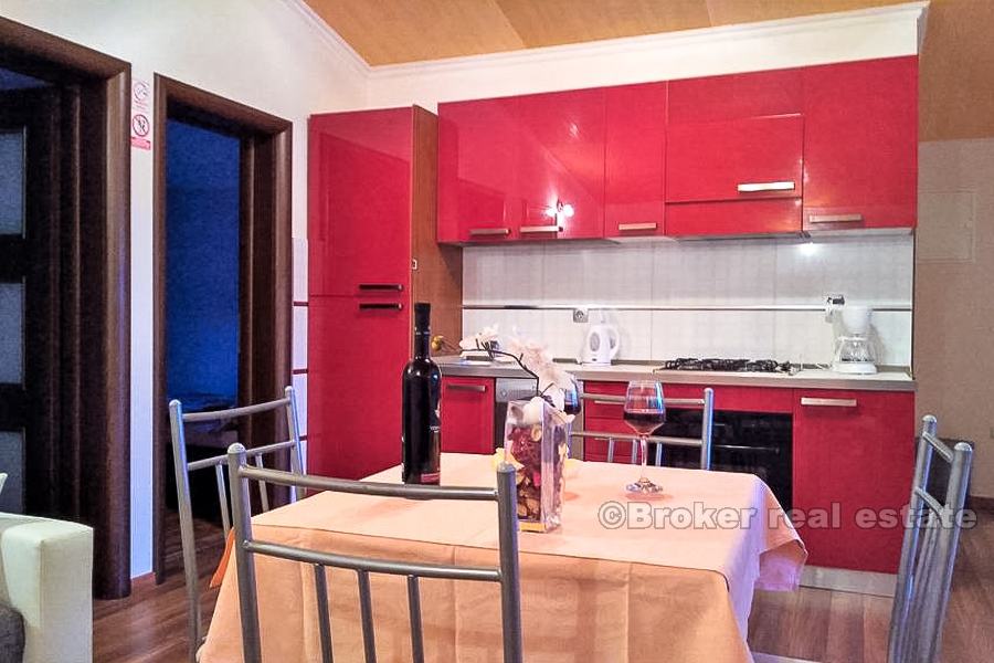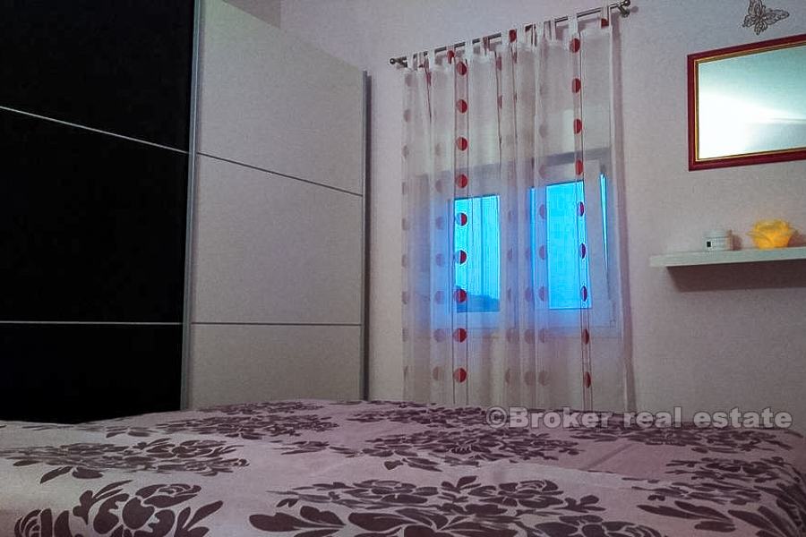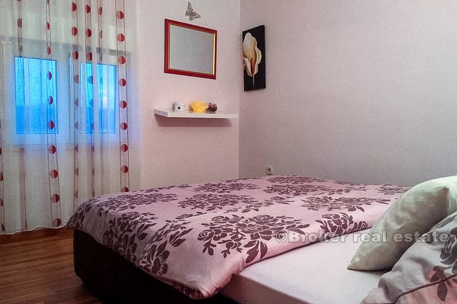 Na svakoj od etaža nalazi se po jedan komforan dvosoban stan(apartman) površine cca 75m2 sa svojim zaštičenim velikim terasama, s kojih se pruža otvoren pogled prema moru, odnosno prekrasnom prirodnom krajoliku.