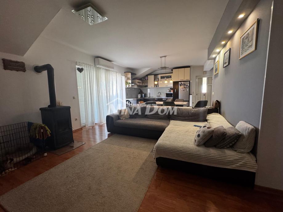 Kuća se nalazi na zemljištu veličine 910 m2 od kojih 780 pripada okućnici i dvorištu. Prizemlje kuće se sastoji od garaže , ulaza , dvije spavaće sobe , kupaonice , kuhinje i dnevnog boravka - prizemlje je potrebno urediti. 1. kat kuće s zasebnim ulazom je kompletno uređeno , također se sastoji od dvije spavaće sobe , kupaonice , open space dnevnog boravka s kuhinjom te dvije terase.
