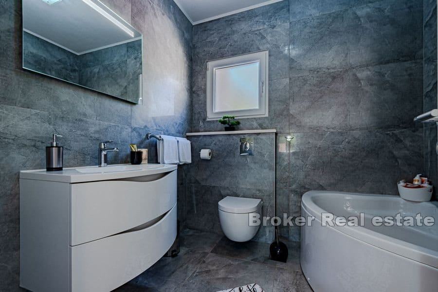 Na prvom katu se nalazi apartman koji se sastoji od tri spavaće sobe, dvije kupaonice, otvorenog koncepta