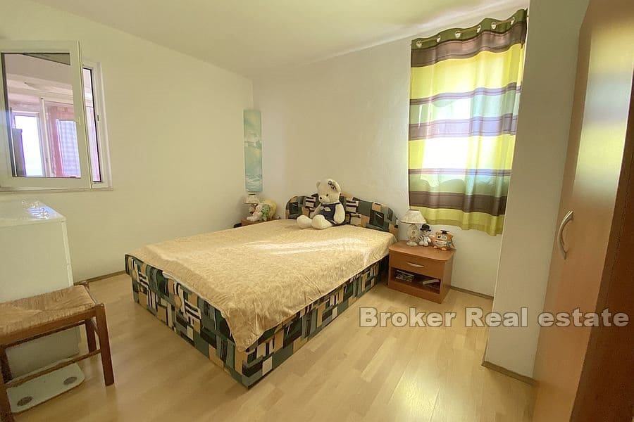 pet apartmana površine od 36m2 do 63m2, dok se na vrhu nalazi penthouse u viskom roh bau stanju sa otvorenim pogledom na more. Na prvom katu se nalaze dva apartmana od 63m2, dok su na drugom katu