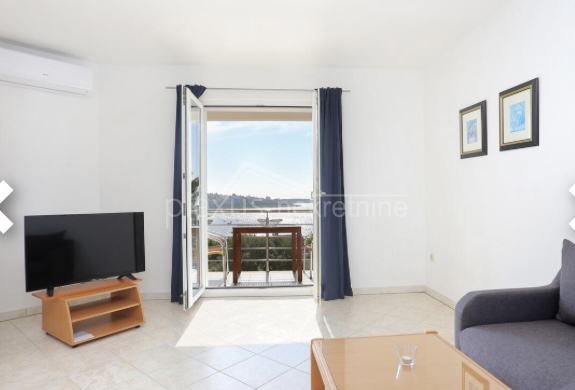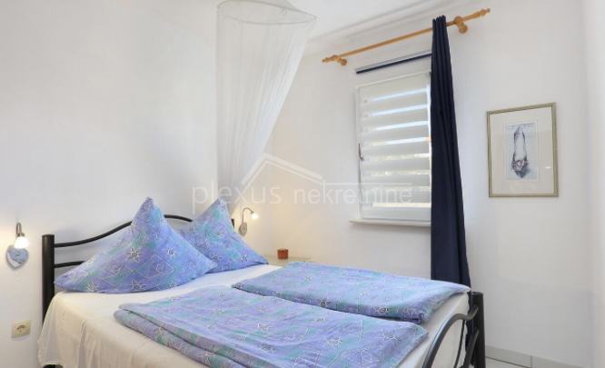 U prizemlju se nalazi spremište i garaža ukupne površine 100 m2. Na svakom katu se nalaze po dva apartmana (ukupno 6) iz kojih se proteže lijepi pogled na zaljev.