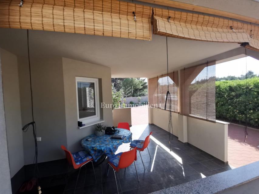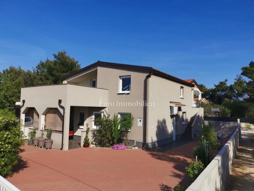 Nekretnina se sastoji od tri apartmana koji se nalaze u prizemlju i na prvom katu. U prizemlju se smjestio apartman koji ima dnevni boravak, kuhinju i blagavaonicu, kupaonicu, dvije spavaće sobe, izlaz na natkrivenu terasu i garažu. Na prvom katu je jedan studio apartman i jedan apartman koji ima čak dvije terase te jednu spavaću sobu, dnevni boravak i kuhinju. Svi apartmani su klimatizirani. Nekretnina se nalazi na odličnoj lokaciji blizu mora na popularnom turističkom mjestu - otoku Viru. Odlična nekretnina za investiciju i bavljenje turizmom. Ne propustite priliku!