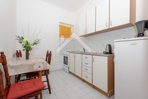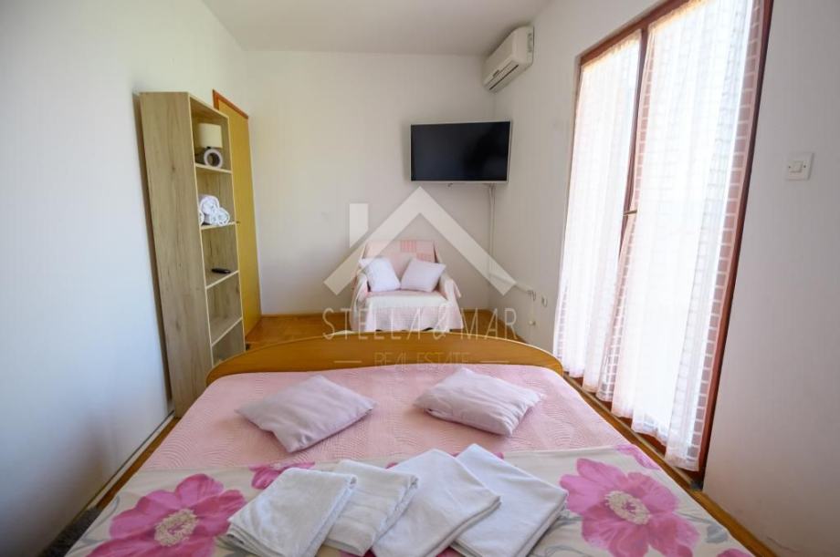 Trenutno kuća sadrži 4 apartmana i garažu. Apartmani su uhodani duži niz godina u turističkom iznajmljivanju. Pristup sa dva javna puta. Blizina sadržaja.