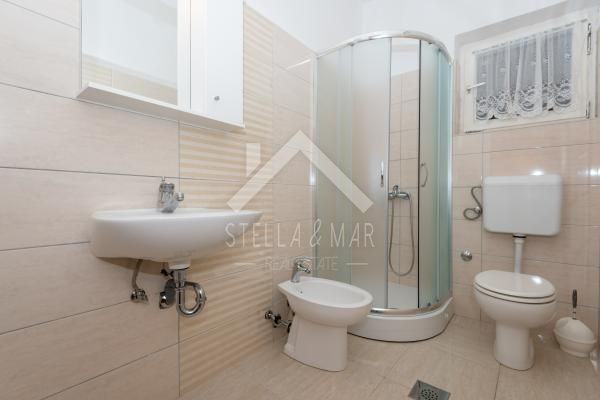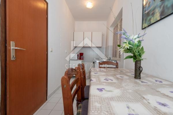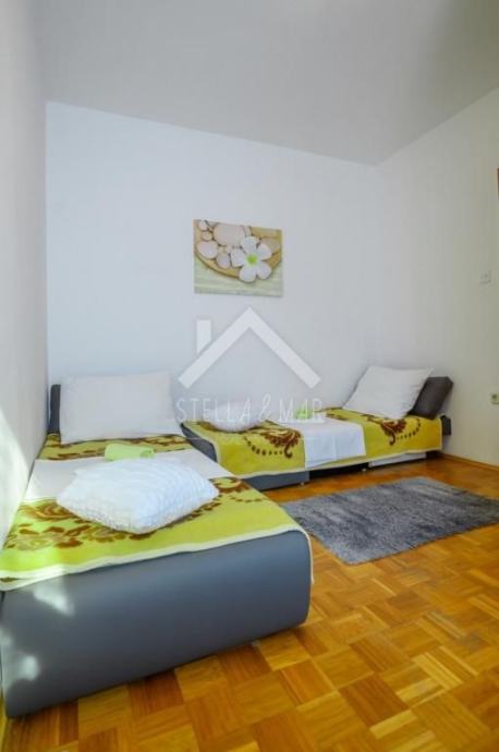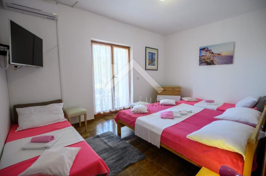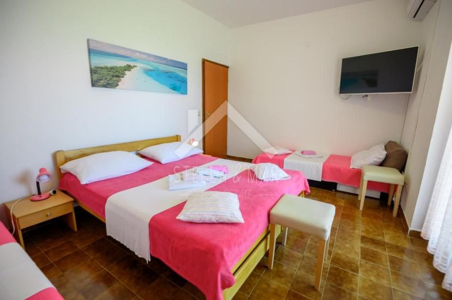 Prodaje se apartmanska kuća sa velikom okućnicom na vrlo atraktivnoj lokaciji. Udaljena je svega 80m od mora i prekrasne plaže. Smještena je u mirnom dijelu, predstavlja idealnu investiciju za turistički najam, izmjenu objekta, kao i mogućnost gradnje još jednog (primjerice stambene zgrade sa nekoliko apartmana, kuće sa bazenom i sl.).