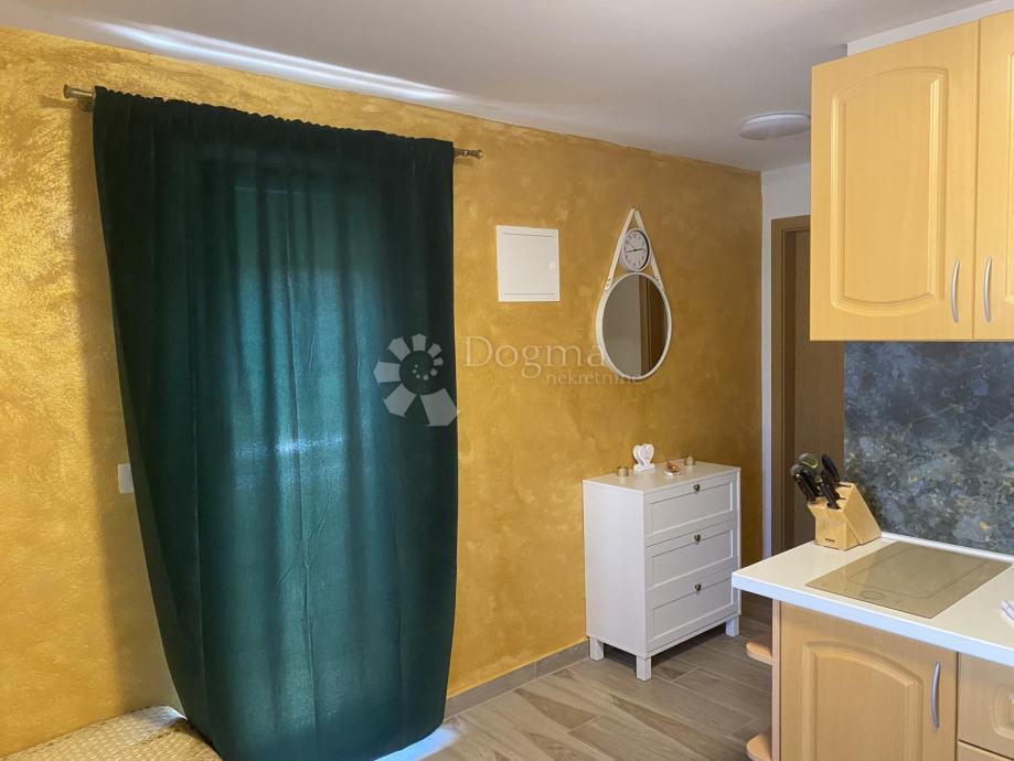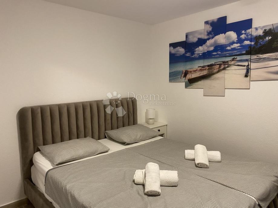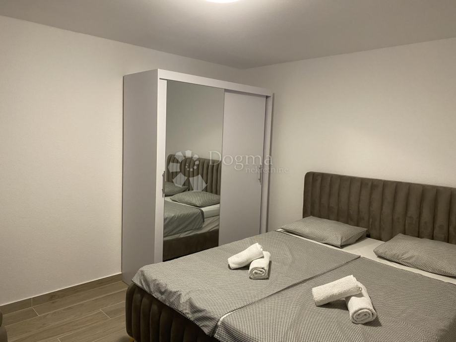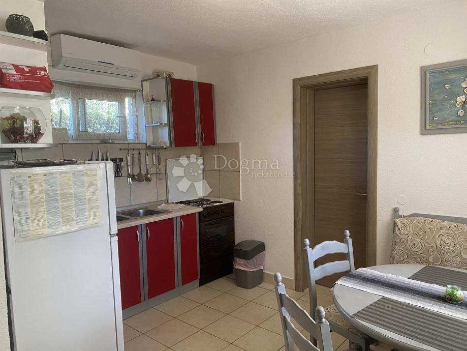Nekretnina se sastoji od 3 apartmana. U prizemlju se nalaze dva odvojena apartmana, svaki sa zasebnim ulazom, spavaćom sobom, kuhinjom, blagovaonicom i kupatilom. Kvadratura manjeg apartmana iznosi 25 m2, dok kvadratura većega iznosi 40 m2. Na prvome katu se nalazi veliki apartman sa spavaćom sobom, prostorom u kojemu su ujedinjeni dnevni boravak i kuhinja, te veliko kupatilo. Ukupna kvadratura apartmana iznosi 45 m2. U cijenu je uključena i parcela od cca 130 m2 koja služi kao parking s kapacitetom od 6 parkirnih mjesta. Sa samo 200 metara udaljenosti od mora, ova nekretnina nudi savršenu lokaciju za opuštanje i rekreaciju. Iskoristite priliku za kupanje, sunčanje i šetnje uz obalu u jednom od najljepših dijelova Jadrana.
