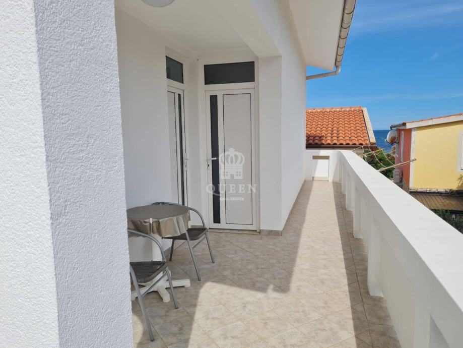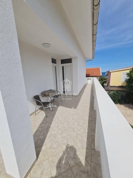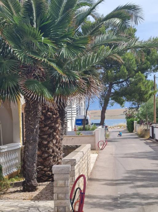 Prodaje se prekrasna samostojeća apartmanska kuća udaljena svega 80m od mora i plaže.Kuća se nalazi na parceli od 306m2. U prizemlju nekretnine smješten je veliki trosobni apartman sa tri spavaće sobe, kupaonica, kuhinja spojena sa dnevnim boravkom i terasa površine 101m2. U prizemlju se također nalazi garaža od 32m2 te dodatna 3 vanjska parkirna mjesta. Vanjskim stepenicama se penje na kat kuće gdje se nalaze dva dvosobna apatmana, kategorizirana na 3 zvjezdice za smještaj 2+2 osobe. Apartmani su u potpunosti opremljeni, prostrani i uhodani za najam. Posjeduju 2 terase od kojih je jedna velika i sa djelomičnim pogledom na more. Nekretnina je lagilzirana, posjeduje uredne papire i vlasništvo te je odmah spremna za preuzimanje. Moguć dogovor oko cijene za ozbiljnog kupca.