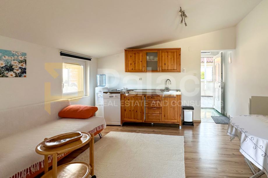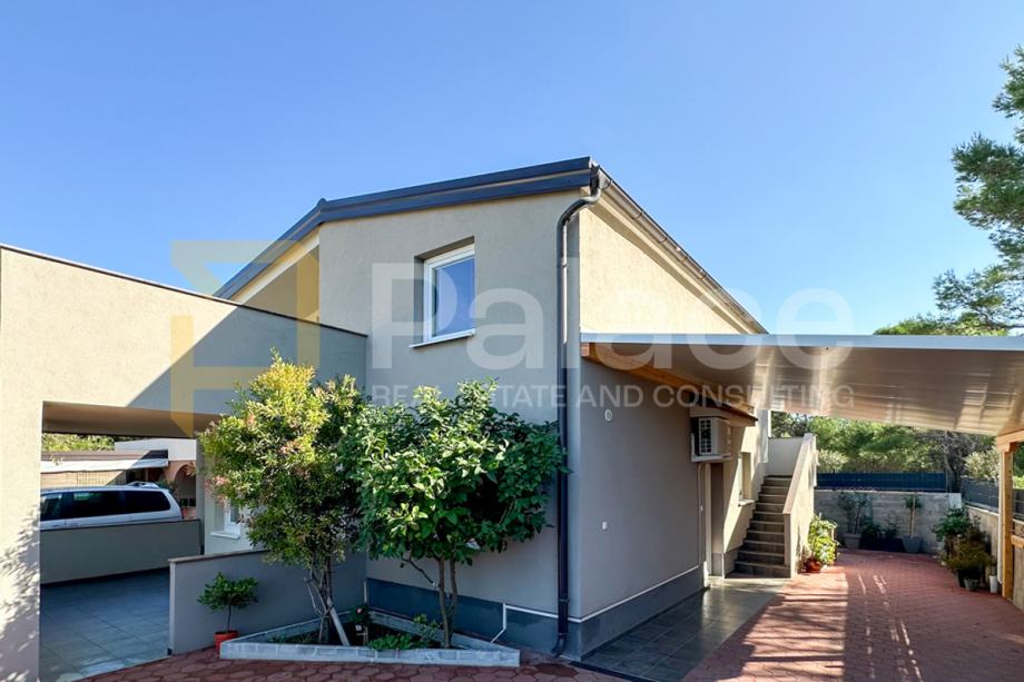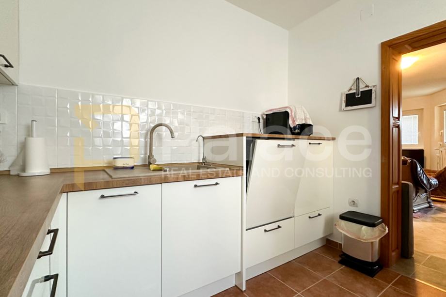 Kuća se prodaje potpuno namještena, a sav namještaj je relativno nov i moderan. Kuhinja je rađena po mjeri u Lesnini, što osigurava kvalitetu i trajnost, dok novi krov i fasada s izolacijom od stiropora dodatno jamče dugovječnost i nisku potrošnju energije. Ovaj objekt nudi cjelokupan paket za one koji traže miran i udoban život na moru, uz mogućnost instantnog useljenja ili nastavka turističkog iznajmljivanja.