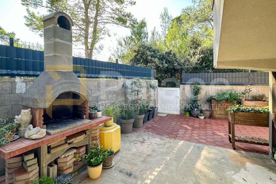 Ono što ovu nekretninu dodatno čini atraktivnom jest veliko, uređeno dvorište koje pruža dovoljno prostora za obiteljska okupljanja, igru ili opuštanje na otvorenom. Dvorište sadrži natkriveno parkiralište za dva automobila, kao i garažu koja se trenutno koristi kao spremište, pružajući dodatni prostor za pohranu ili mogućnost prenamjene po želji budućeg vlasnika.