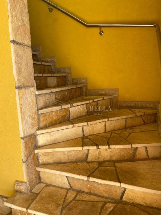 Kuća u prizemlju te na katu ima veliku natkrivenu terasu,a sa druge strane ima veliki balkon,ima podno grijanje ,solarne panele 13kw,solarno grijanje vode ,9 parkirnih mjesta. Kuća se prodaje kompletno namještena sa vlastitim asfaltiranim putem. Sastoji se od tri etaže :prizemlje,kat i potkrovlje.