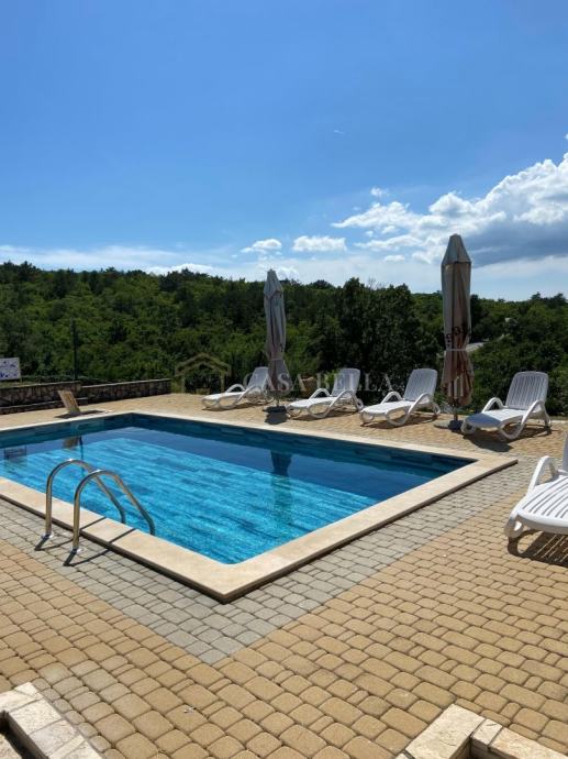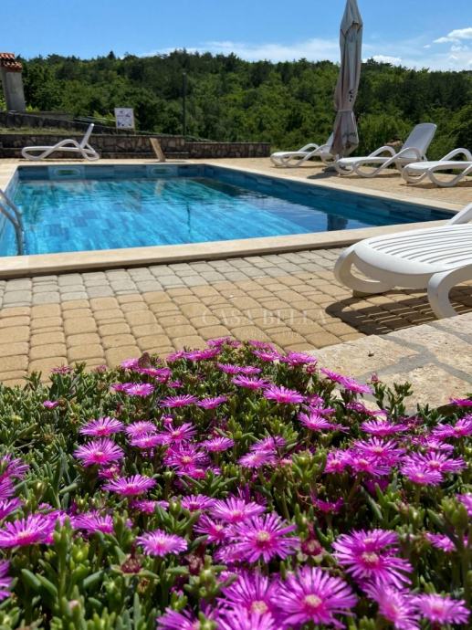 Casa Bella iz ponude izdvaja prekrasnu apartmansku kuću ili mini hotel sa bazenom 8x4m smještenu na brežuljku nedaleko od Labina,Trgeta i Rapca. Krasi je prekrasan okoliš.
