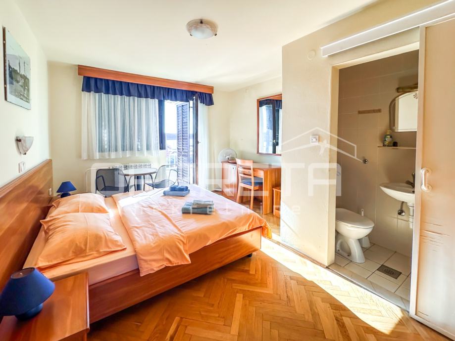 Kuća se proteže kroz 4 etaže, sadrži 5 smještajnih jedinica s konobom koja može služit kao spremište ili dodatan apartman, a sve izgrađeno na velikoj parceli od 1.656 m2.