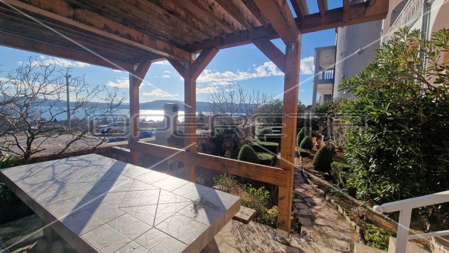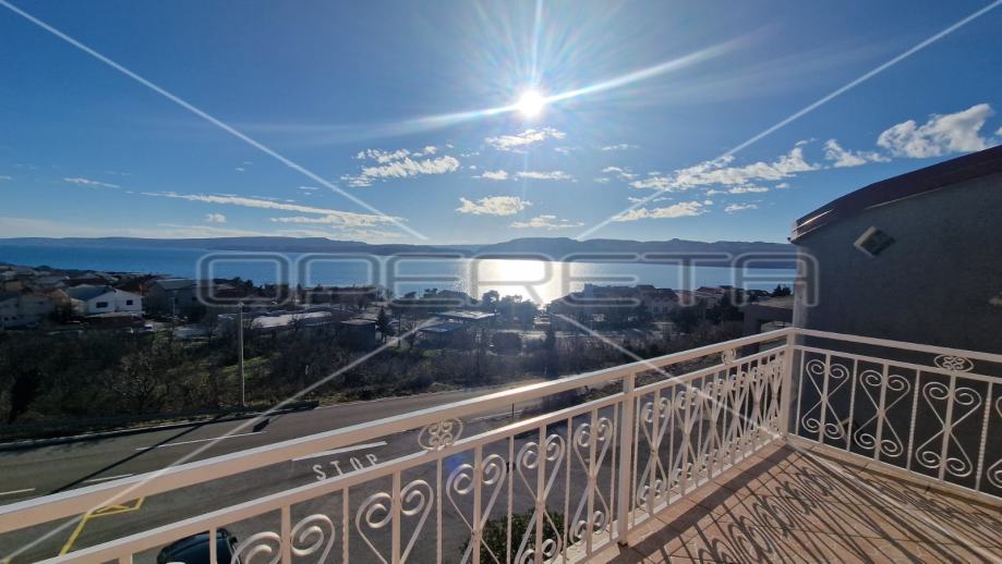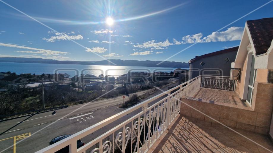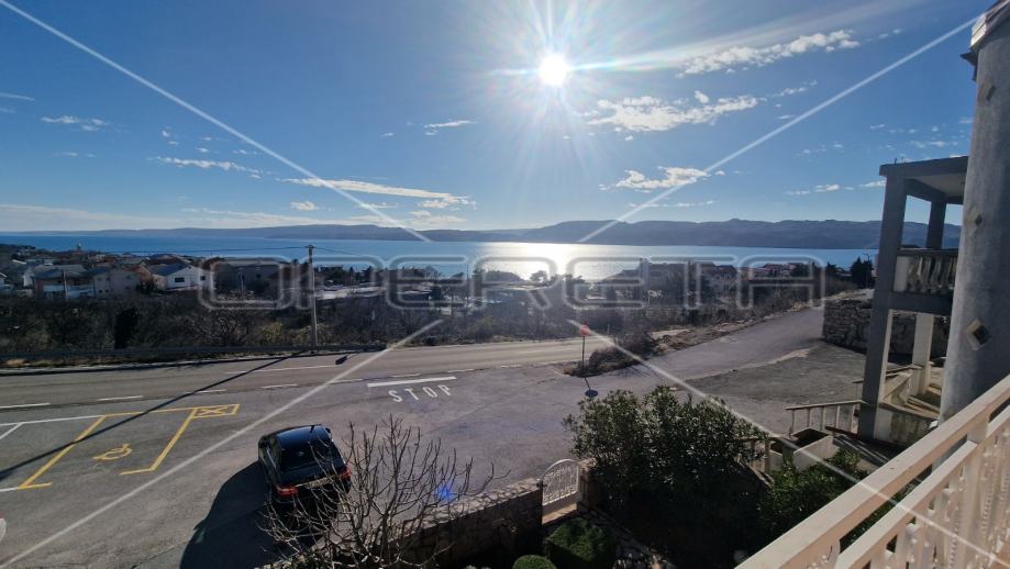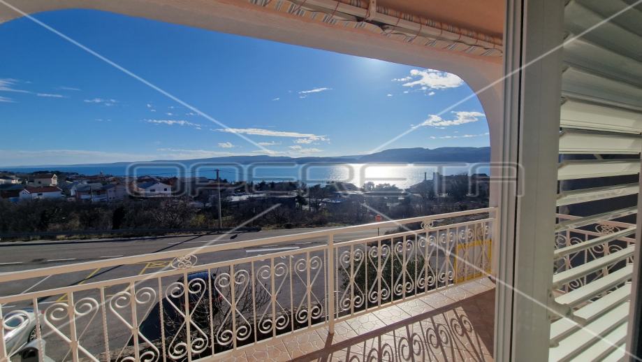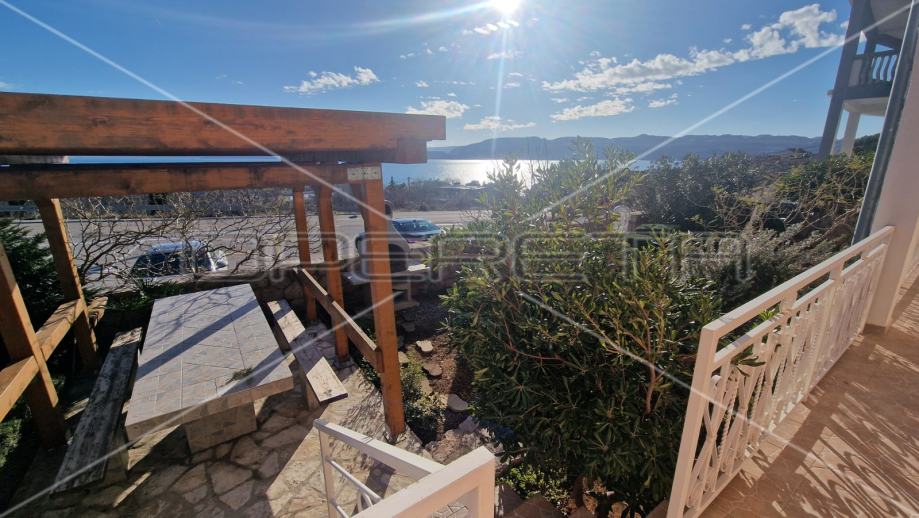 Na prvom katu se nalazi trosobni apartman sa natkrivenim balkonom s kojeg se proteže neometani pogled na more i otok Pag.