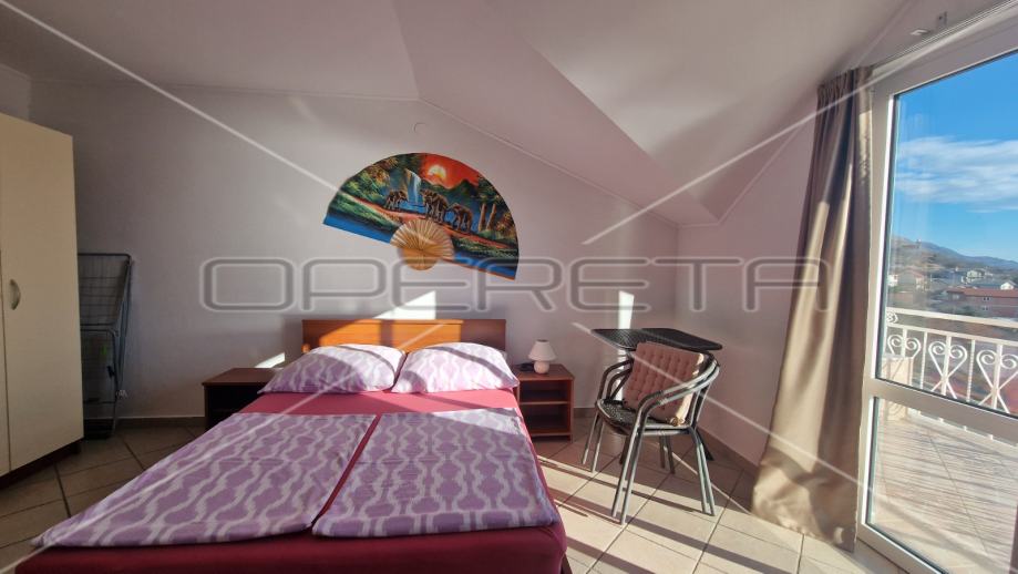 Na drugom katu kuće se nalazi jedan jednosobni apartman i dva studio apartmana s balkonom s kojeg se proteže neometani pogled na more i otok Pag.