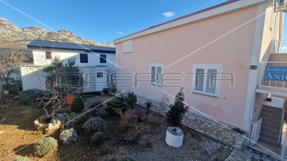 U neposrednoj blizini centra Karlobaga prodaje se kuća sa šest apartmana sveukupne površine 350 m2. Kuća se sastoji od prizemlja, dva kata i tavana.