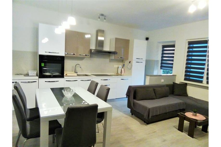 Prizemlju se sastoji od dva stana. Prostrani 2-sobni stan ima dnevni boravak s kuhinjom i blagovaonicom, hodnik, dvije spavaće sobe i kupaonicu. Manji stan se sastoji od kuhinje s blagovaonicom, dnevnog boravka i kupaonice.