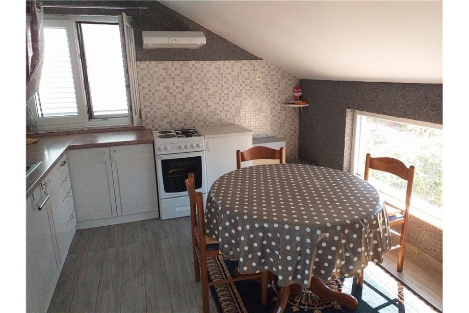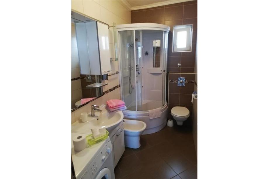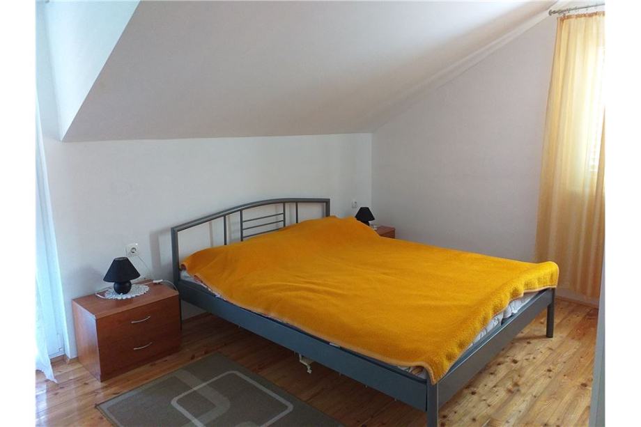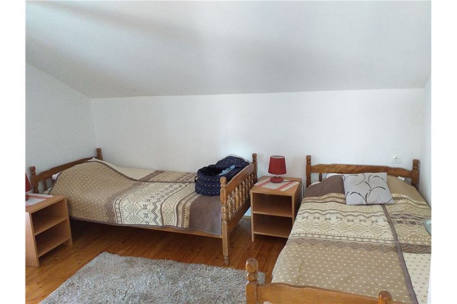 2. kat je 2-sobni stan s balkonom, dvije spavaće sobe, dnevnog boravka s kuhinjom i blagovaonicom, te kupaonice. Kuća je kompletno uređena, opremljena je s klima uređajima. u prizemlju je ugrađeno centralno grijanje s peći na pelete. Na parceli od 482 m2, uređeno je dvorište, parkirni prostor za više vozila, vanjski roštilj. Kuća ima uhodani posao / stalne goste za najam apartmana.