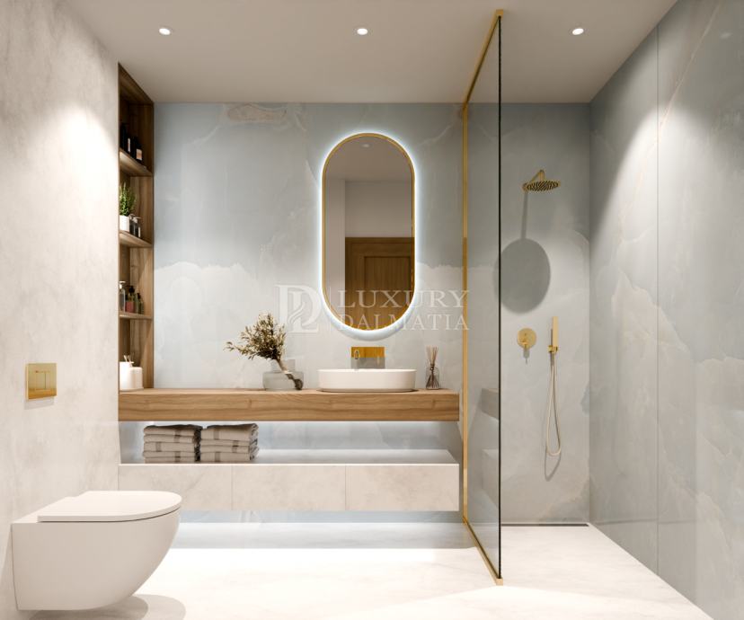 Moderan jednosoban stan s vlastitim parkirnim mjestom nudi udobnost i prekrasan pogled na more, što ga čini izvrsnom investicijskom nekretninom, ali i idealnim domom za cjelogodišnje stanovanje.