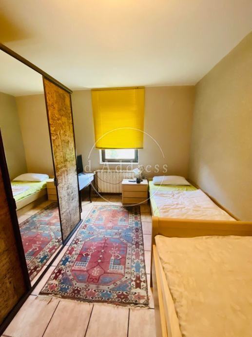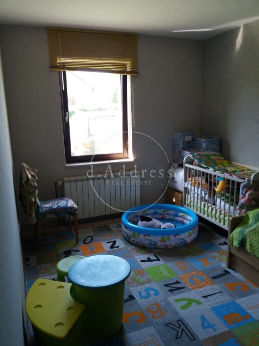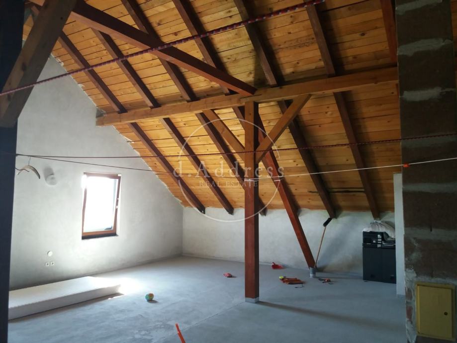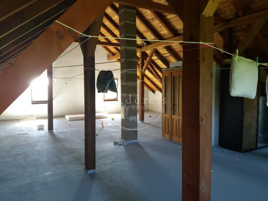 Veća kuća površine 300 m2 sastoji se od hodnika, dnevnog boravka, blagovaonice, kuhinje, velike terase sa roštiljem i predivnim pogledom na zelenilo, kupaonice sa kadom i tušem, dvije spavaće sobe i WC-a za goste, čine ju prizemlje i potkrovlje.