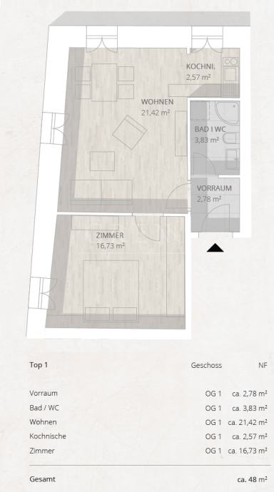 Ovaj pažljivo renovirani stan nudi savršen spoj mediteranskog ugođaja i moderne funkcionalnosti. Smješten na prvom katu povijesne zgrade, nalazi se u samom srcu starogradske jezgre Poreča. Stan površine cca 48 m2 ima izuzetno dobro iskorišten tlocrt koji obuhvaća ulazni prostor s garderobom, kupaonicu s tuš-kabinom, WC-om, umivaonikom i perilicom rublja, otvoreni dnevni boravak s blagovaonicom i kuhinjom, te odvojenu spavaću sobu s ugradbenim ormarom.