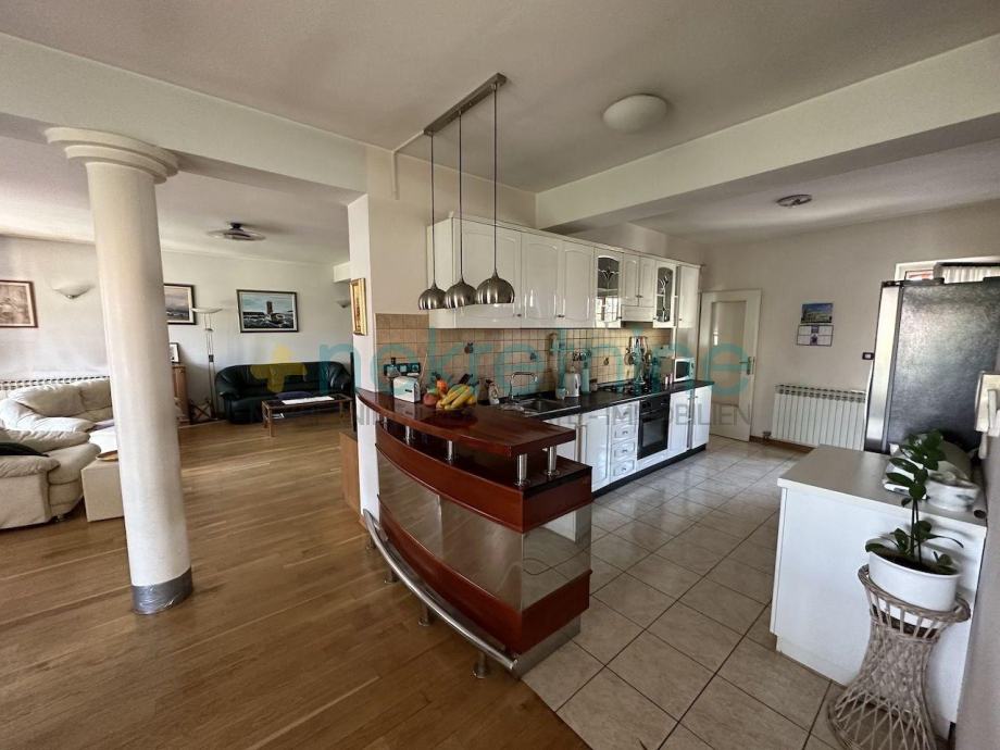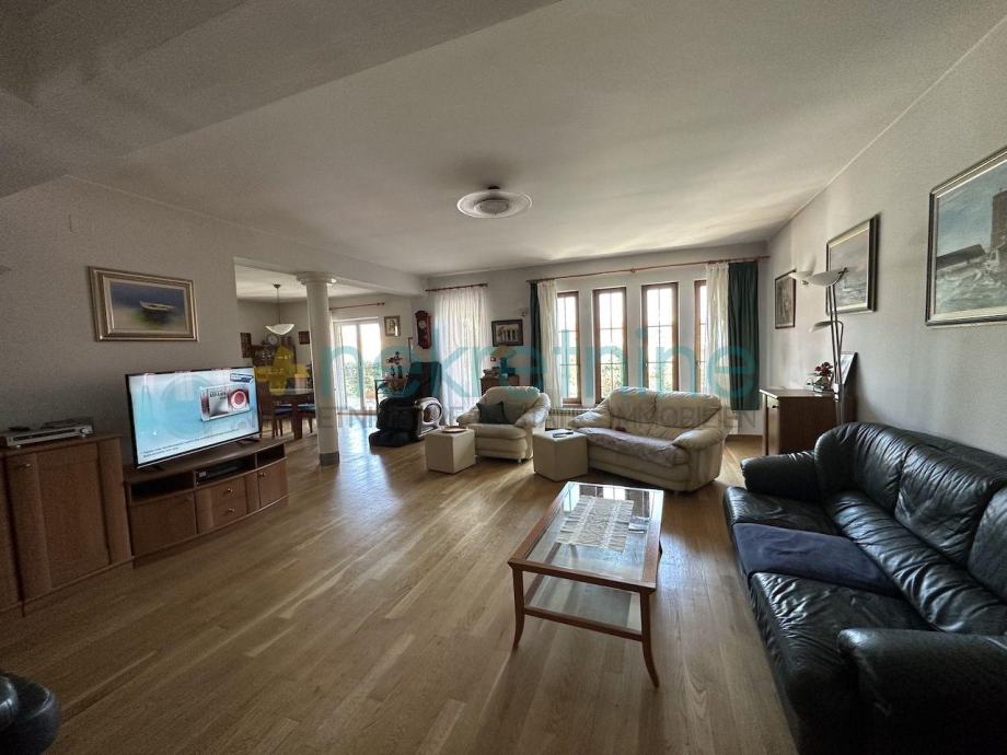 -Prvi kat na kojem se nalazi dnevni trakt s blagovaonicom i kuhinjom s izlazom na veliki trijem, jednom spavacom sobom, velikom garderobom i kupaonicom