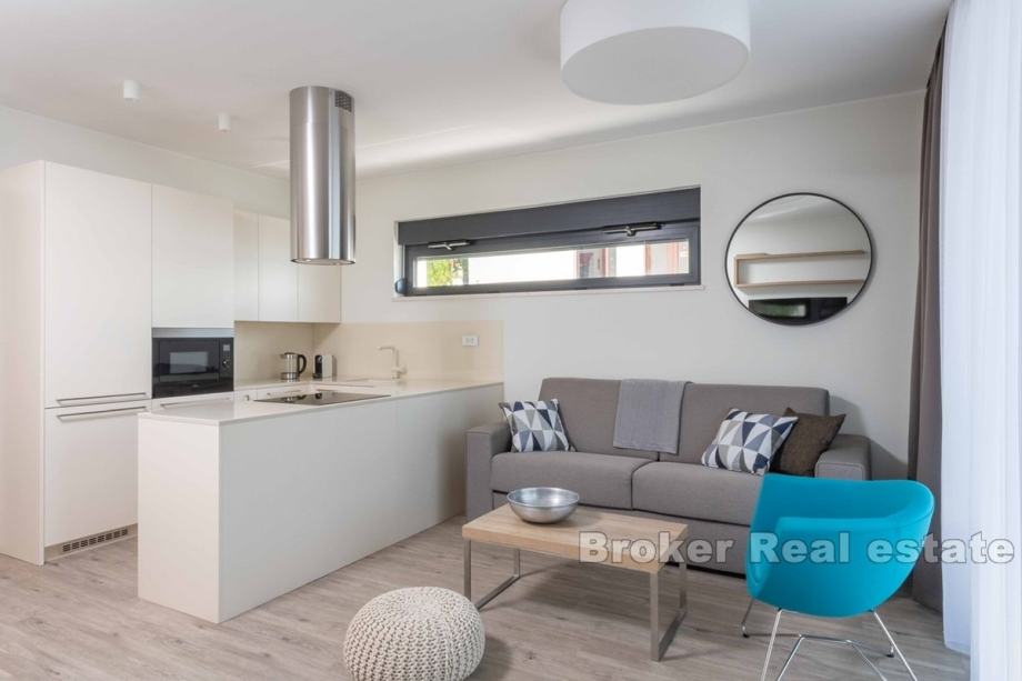 U cijenu apartmana uključeno je i jedno garažno mjesto. U prizemlju urbane vile nalazi se infinity bazen s lounge prostorom na zajedničko korištenje svih stanara.