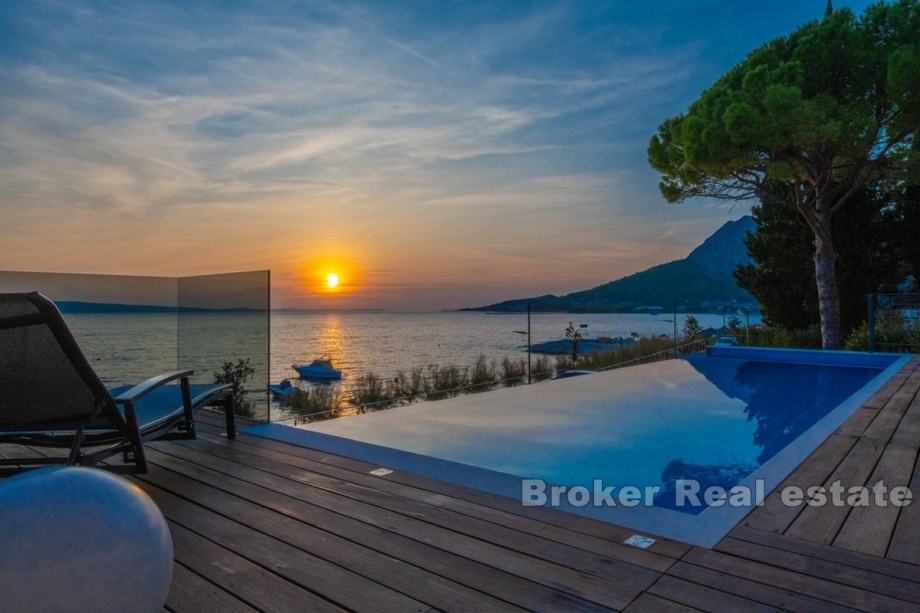 Izvanredan apartman na prestižnoj lokaciji, smješten u prvom redu uz more. Stambena površina od 66,62 m² uključuje dvije spavaće sobe, od kojih jedna ima vlastitu kupaonicu, prostrani dnevni boravak s izlazom na terasu koja pruža prekrasan pogled na more i otoke. Uz to, apartman sadrži kuhinju, hodnik, dodatnu kupaonicu i praonicu.