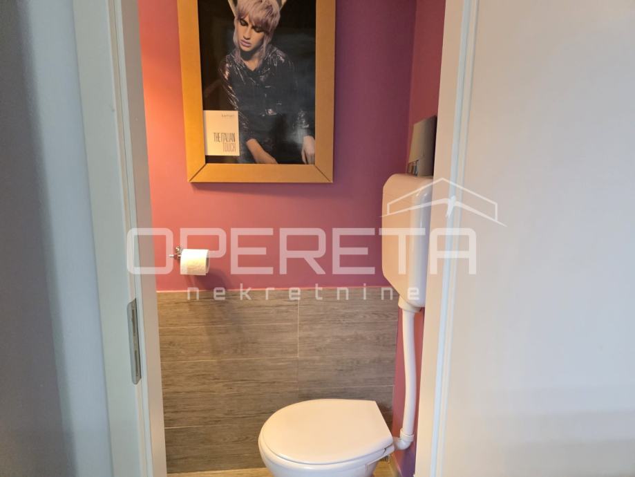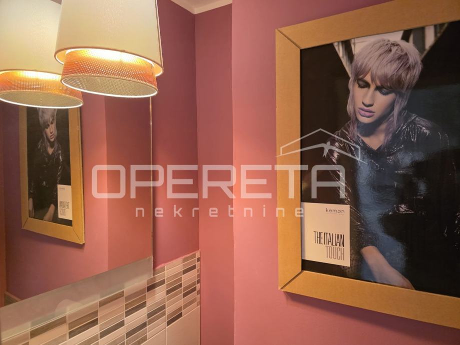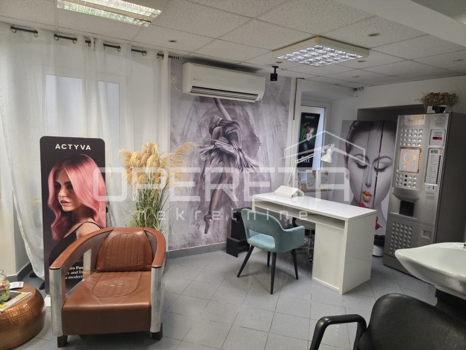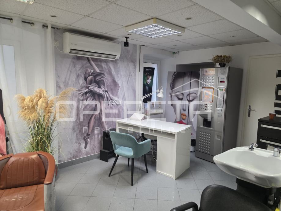 Trenutno se koristi kao kozmetički i frizerski salon, ali njegova funkcionalnost omogućuje jednostavnu prenamjenu u dva zasebna poslovna prostora od po 50 m². Svaki od ovih prostora opremljen je zasebnim brojilima za struju i vodu, što omogućuje neovisno poslovanje i prilagodbu različitim potrebama. Poslovni prostor raspolaže građevinskom dozvolom te dvije uporabne dozvole – jednu za frizerski salon i jednu za trgovinu – što pruža dodatnu fleksibilnost u korištenju i širenju poslovnih aktivnosti.