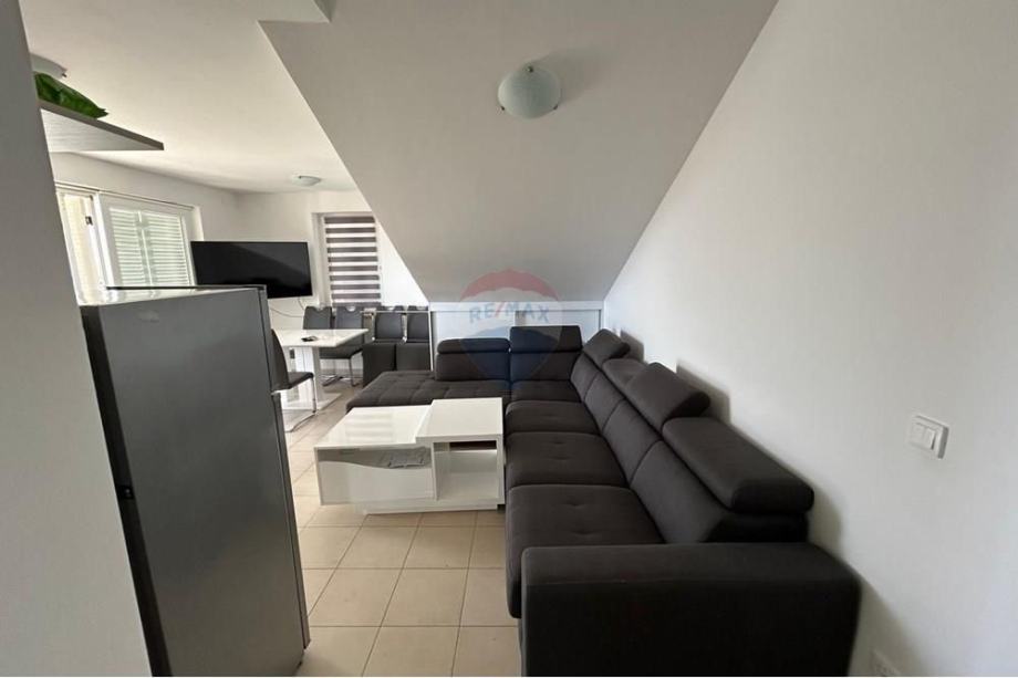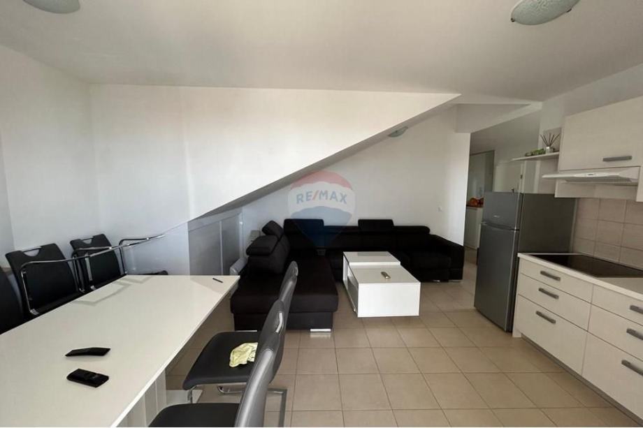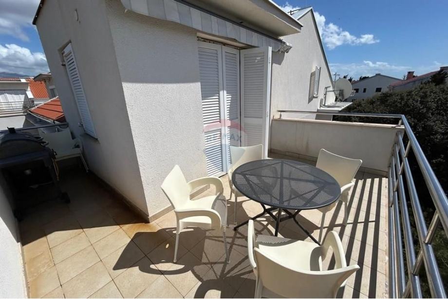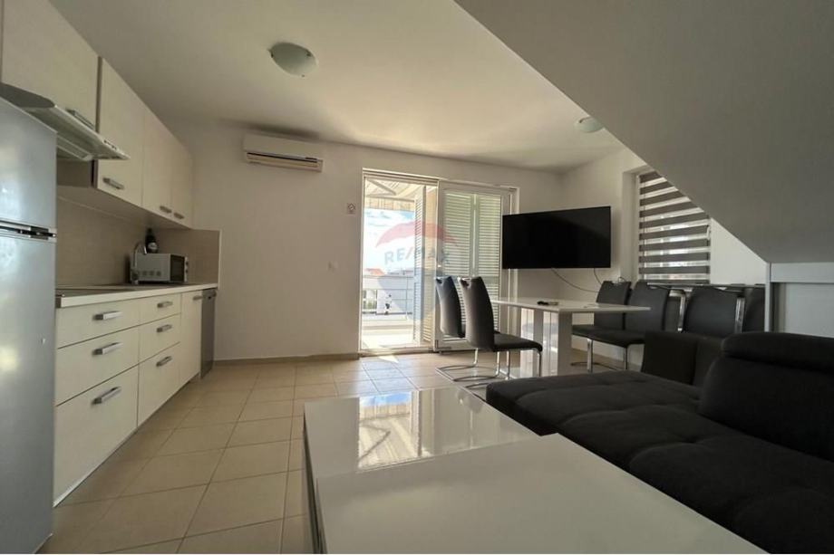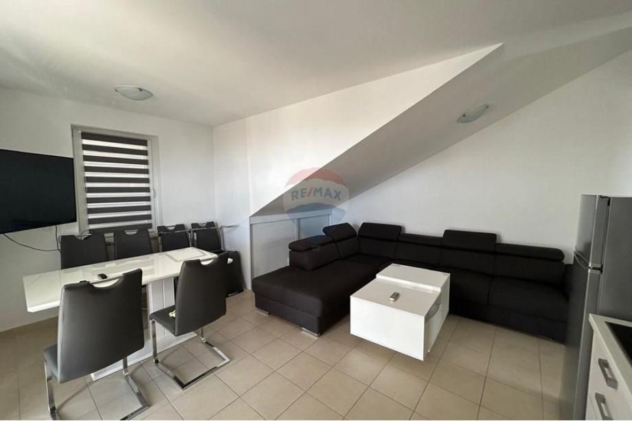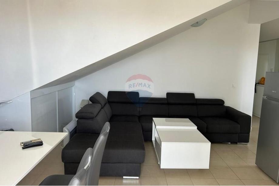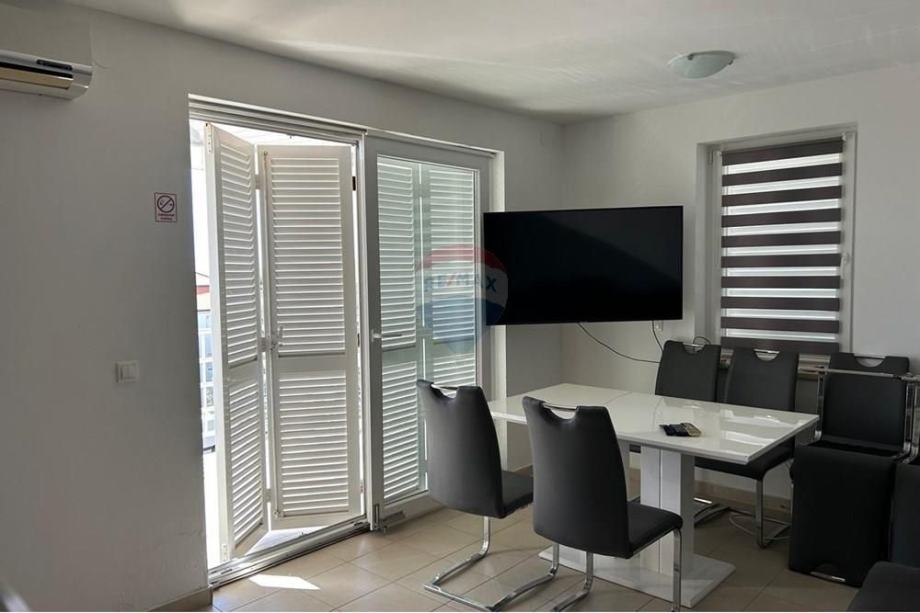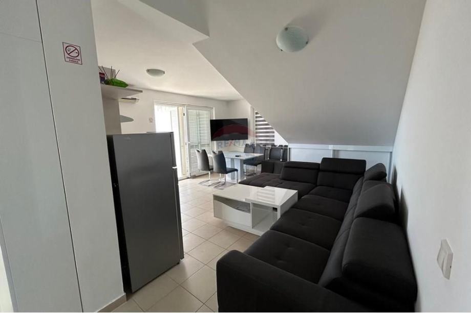 Stan je potpuno namješten s modernom kuhinjom i blagovaonicom, te dodatno opremljen potkrovljem koje doprinosi jedinstvenom mediteranskom šarmu prostora. Iz stana se pruža prekrasan pogled s vanjskog vidikovca, a klimatizirani prostori osiguravaju ugodnost boravka tijekom toplih ljetnih dana. Stan ima osigurano jedno parkirno mjesto, a nalazi se u blizini glavnih cestovnih pravaca, što omogućava laku dostupnost prometnim vezama.