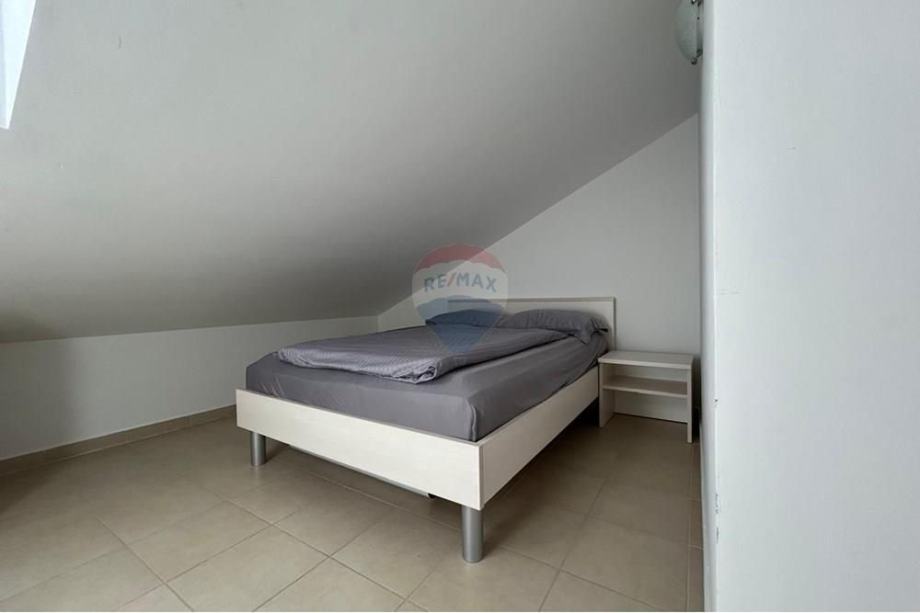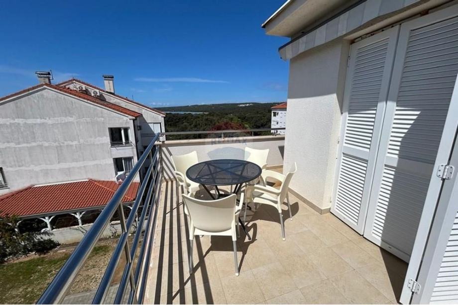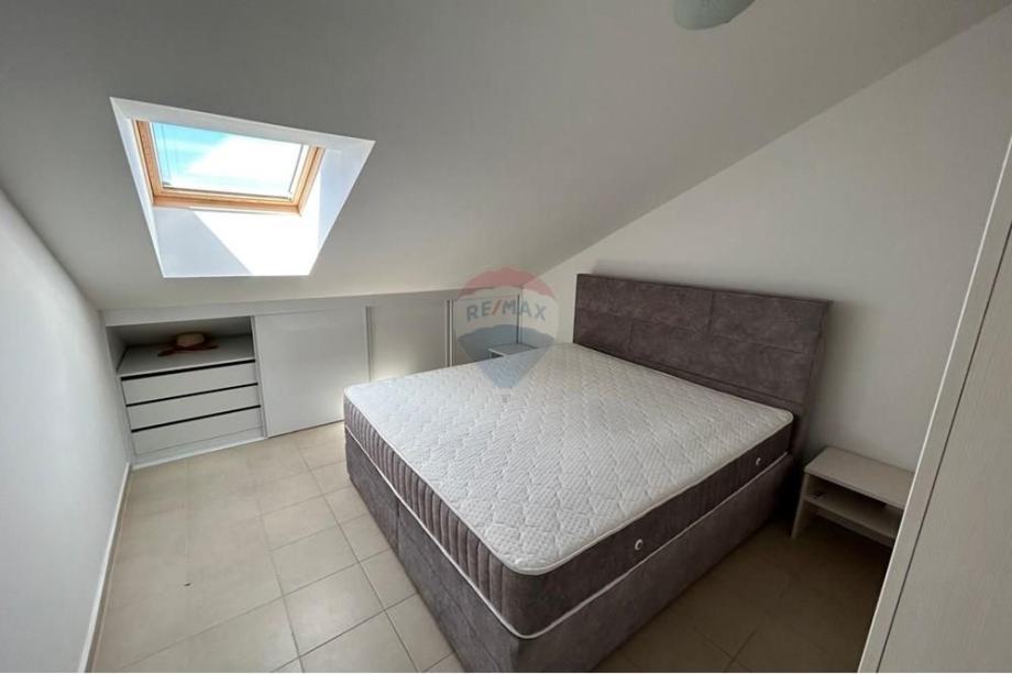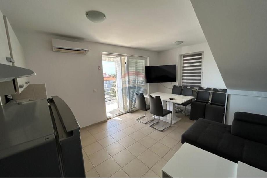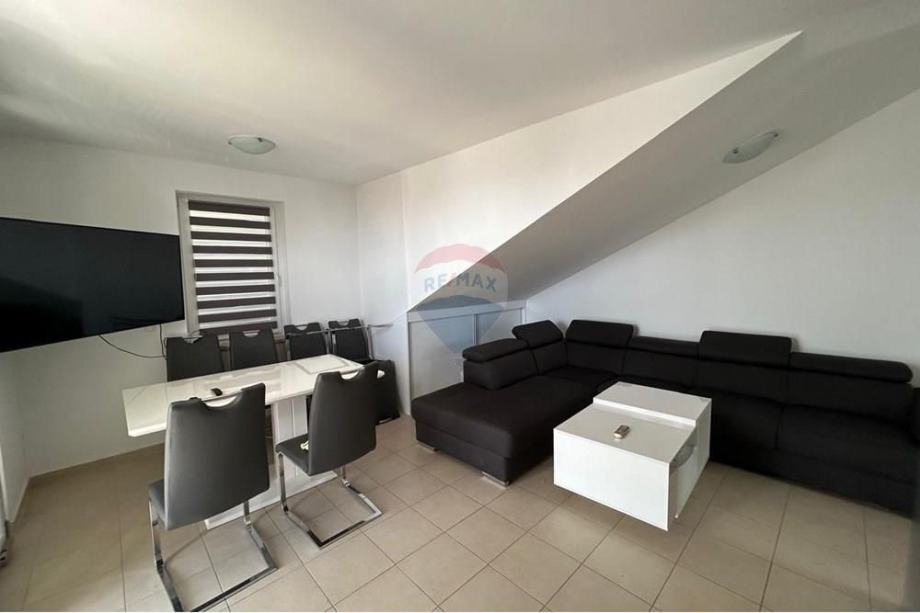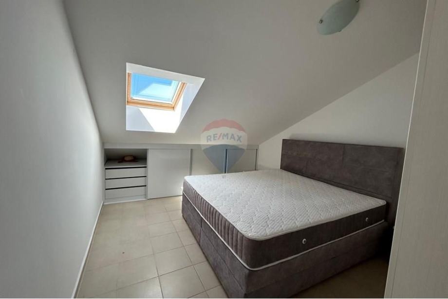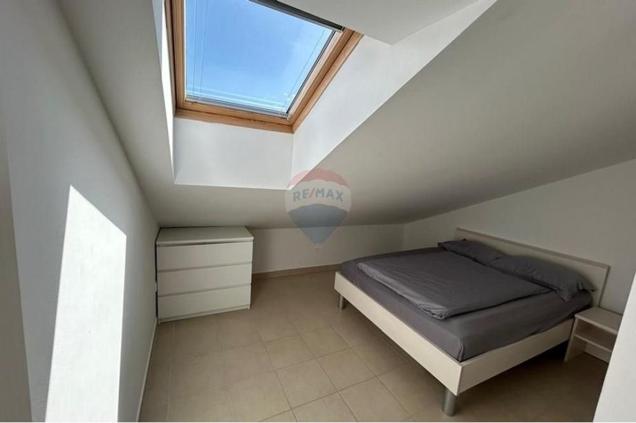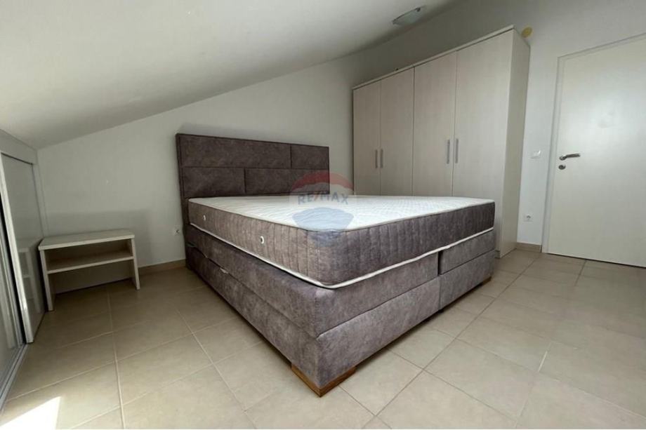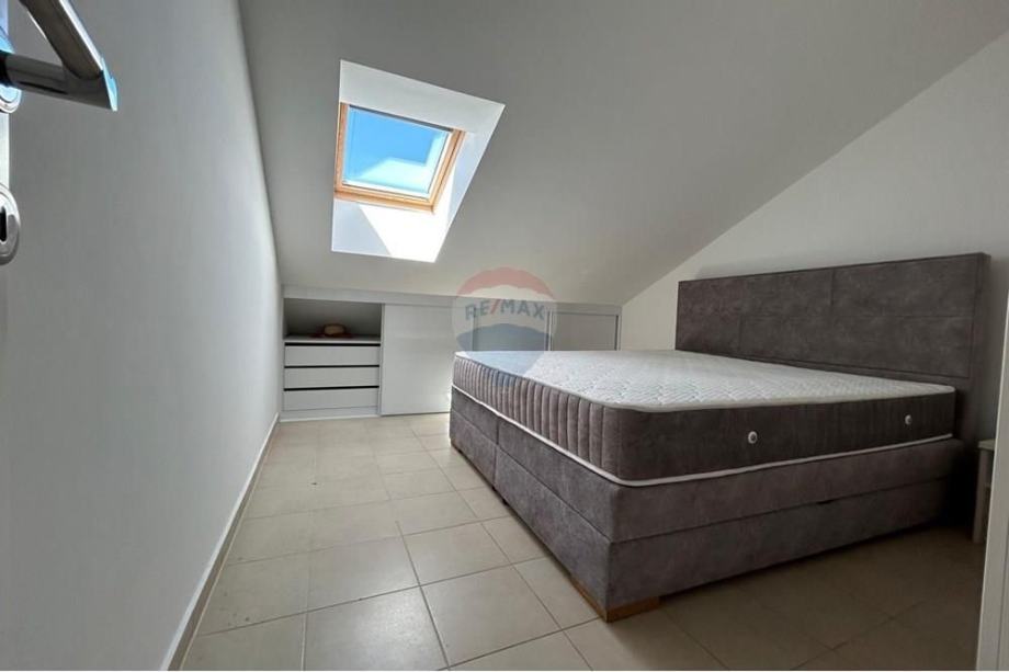 Stan je potpuno namješten s modernom kuhinjom i blagovaonicom, te dodatno opremljen potkrovljem koje doprinosi jedinstvenom mediteranskom šarmu prostora. Iz stana se pruža prekrasan pogled s vanjskog vidikovca, a klimatizirani prostori osiguravaju ugodnost boravka tijekom toplih ljetnih dana. Stan ima osigurano jedno parkirno mjesto, a nalazi se u blizini glavnih cestovnih pravaca, što omogućava laku dostupnost prometnim vezama.