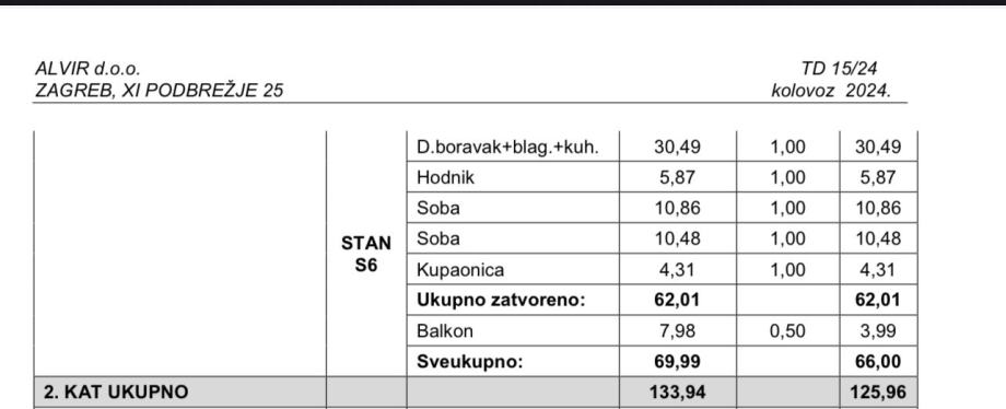 Ukupna površina stana iznosi 66 m².