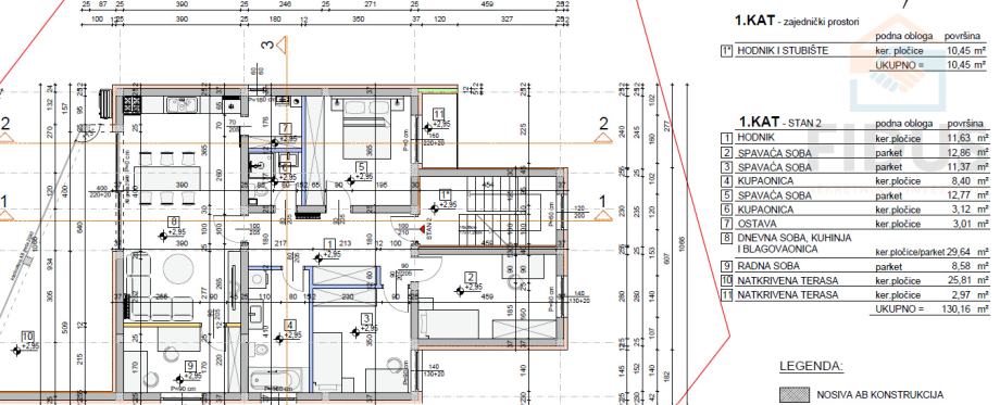 Prodaje se prostrani, 4,5-sobni stan smješten u Gornjem gradu Osijeka, s ukupnom površinom od 130,16 m2. Ovaj moderan stan nalazi se na pvom katu dvokatnice, suvremene arhitekture i visokokvalitetne izgradnje, a čije se useljenje očekuje u šestom mjesecu 2026. godine.