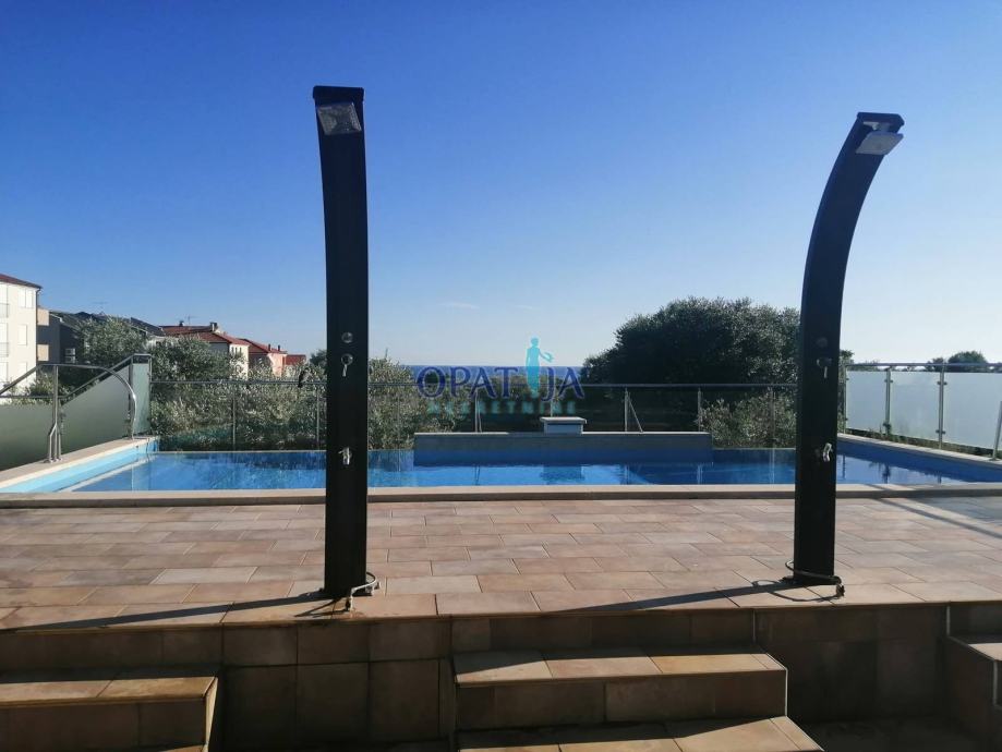 Za one kupce kojima je blizina mora najvažniji kriterij, u prodaji imamo odličan apartman u prizemlju manje stambene zgrade s bazenom koji se sastoji od kuhinje s blagovaonom i dnevnim boravkom, spavaće sobe, kupaonice, velike terase i manjeg dvorišta koje ima direktan izlaz na bazen. Stan ima i vlastito parkirno mjesto u podzemnoj garaži, spremište u suterenu, namješten je, opremljen, klimatiziran ( grijanje/hlađenje ) pa je pogodan i za turističko iznajmljivanje. Najbliža plaža udaljena je svega 300 m, a a ostali bitni sadržaji ( trgovina, ugostiteljski objekti.. ) 100-tinjak metara više.