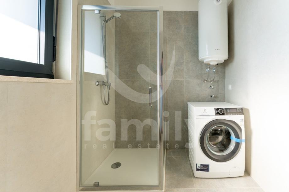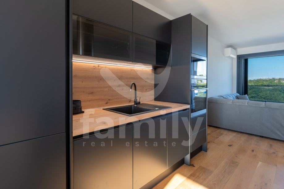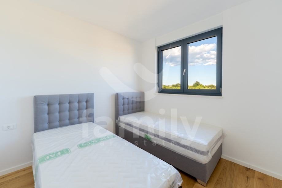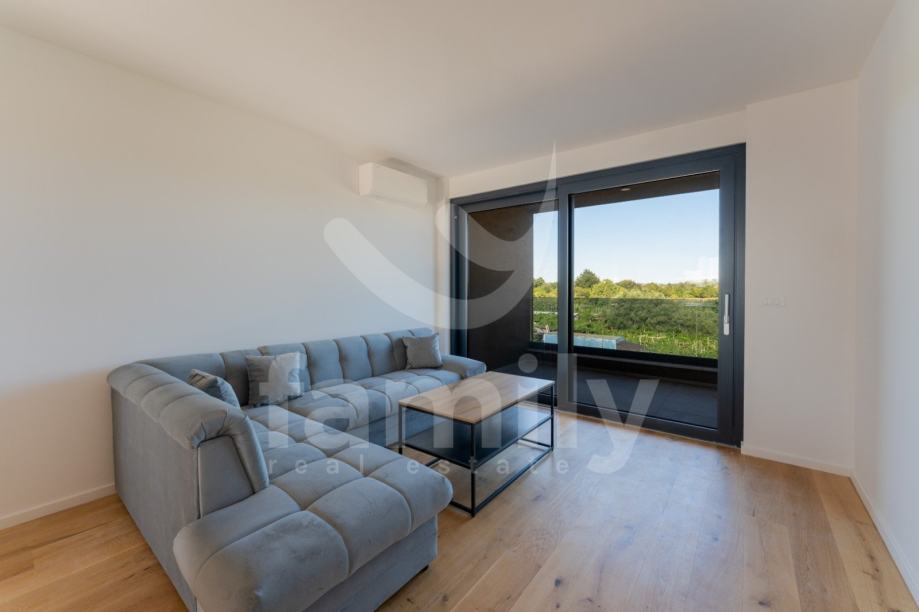 Na mirnoj i atraktivnoj lokaciji u Puli smješten u novogradnji visoke kvalitete na drugome katu, nalazi se ovaj prekrasni i luksuzni penthouse od 120 m2. Iznimno komforan, modernog dizajna i vrlo funkcionalan. Stan se sastoji od hodnika, ostave, prostranog open space dnevnog boravka s kuhinjom DanKuchen koja je opremljena vrhunskim AEG aparatima i blagovaonicom. Iz dnevnog boravka se izlazi na veliku terasu sa koje se pruža lijep pogled. Idealno za uživanje na otvorenom. Posjeduje tri prostrane spavaće sobe od kojih jedna ima vlastitu privatnu terasu te dvije moderne kupaonice s walk-in tušem. Svaka prostorija ima vlastiti klima uređaj, a kroz cijeli stan je provedeno podno grijanje s individualnim termostatima, što omogućuje cjelogodišnji ugodan boravak. Vrhunski materijal i izvedba, prostranost i lokacija čine ovu nekretninu savršenim izborom za život u njoj. Također blizina centra grada i ostalih bitnih sadržaja doprinosi ugodnom boravku u njoj. Stanu pripadaju dva vanjska parkirna mjesta.