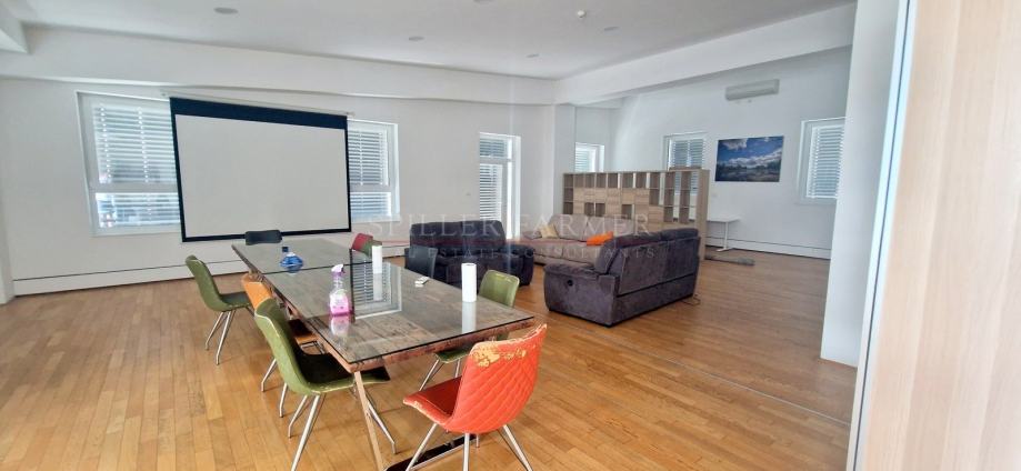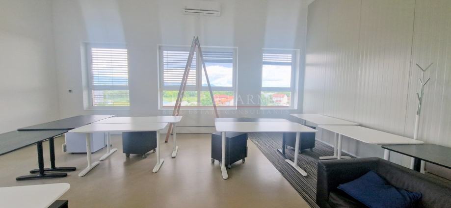 Uredski prostor površine cca. 590,87 m2 nalazi se na trećem katu zgrade. Vertikalna komunikacija je omogućena dizalom i stubištem. Sastoji se od dva prostrana open space prostora, četiri zasebne uredske prostorije, kupaone s toaletom, dva zasebna sanitarna čvora, dvije opremljene kuhinje s prostorom za blagovanje te nenatkrivene terase.