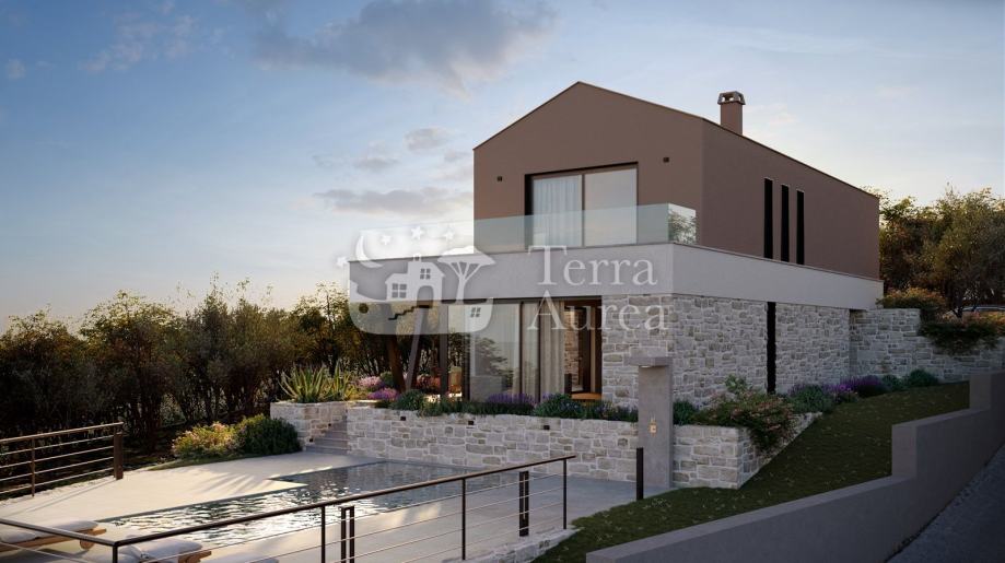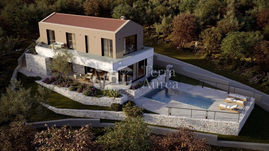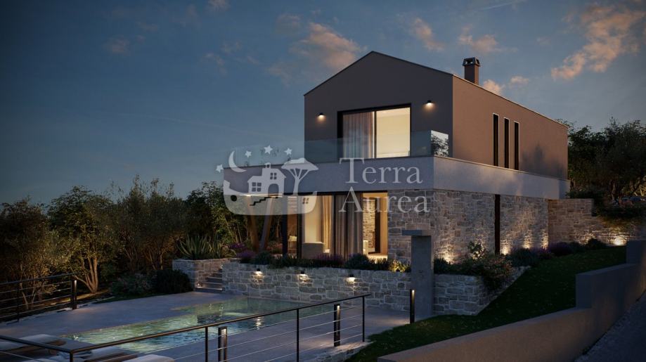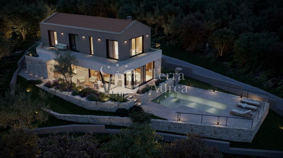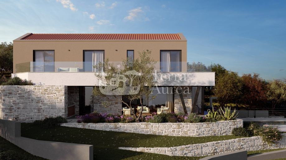 Na katu se nalaze tri moderne spavaće sobe, dvije kupaonice i vešeraj te prvi kat također ima izlaz na terasu s koje se pruža panoramski pogled na more. Nekretninu krasi vrhunska kvaliteta gradnje i opreme, visokokvalitetne podne obloge te klimatizacija, što osigurava ugodan boravak tijekom cijele godine.