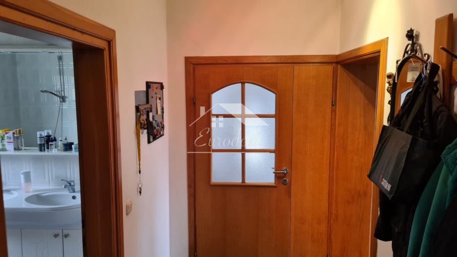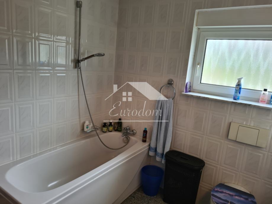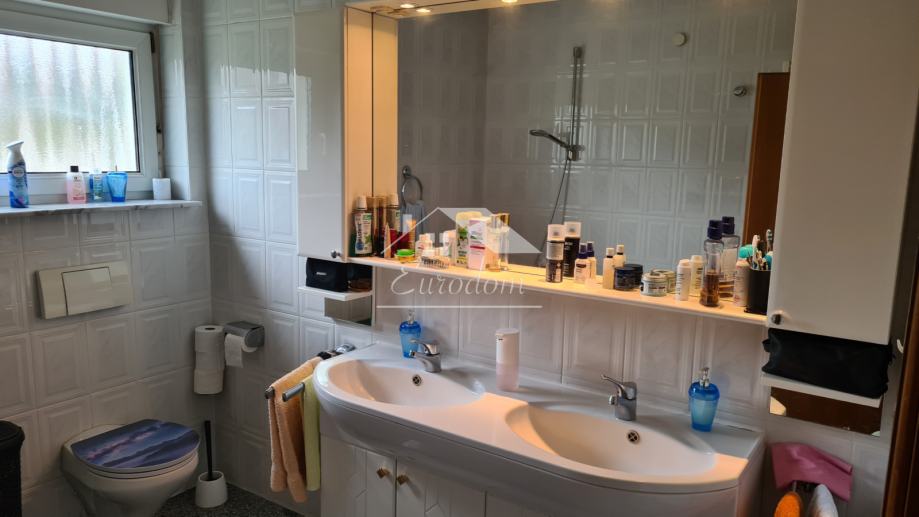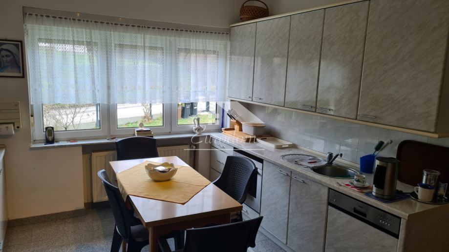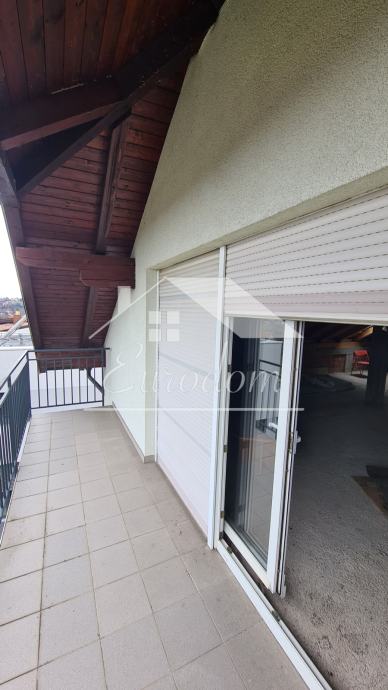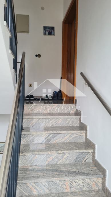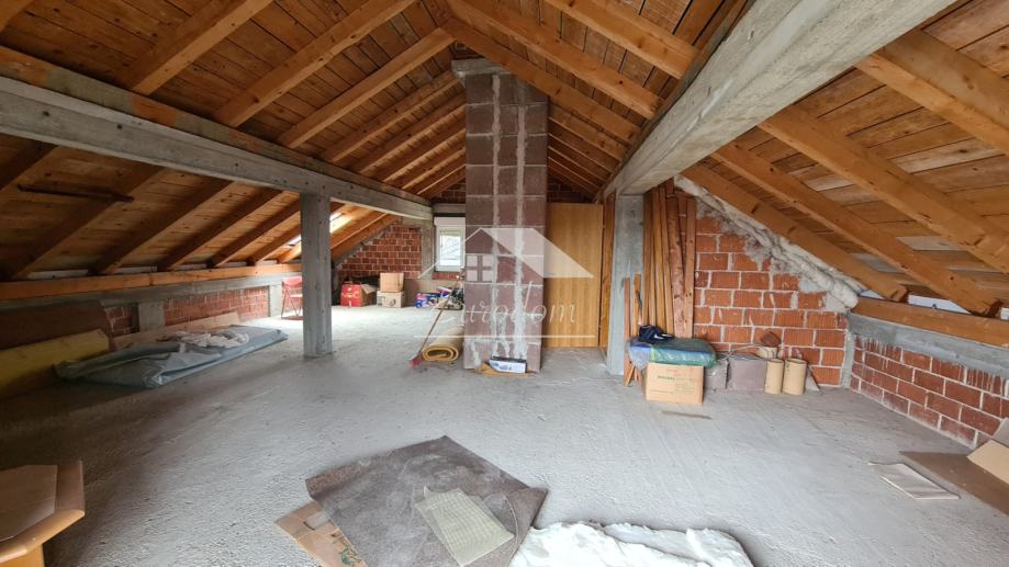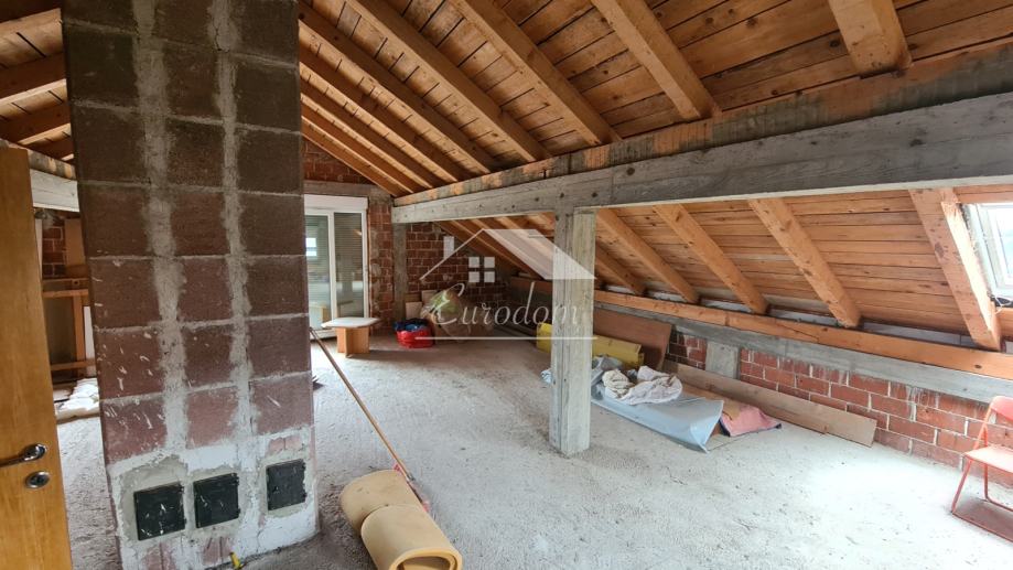 Kuća je funkcionalno raspoređena na razizemlje, prizemlje, prvi kat i potkrovlje. Razizemlje uključuje kupaonicu, boravak s kuhinjom, spremište i garažu. Na prizemlju se nalazi prostrani dnevni boravak s izlazom na balkon, dobro opremljena kuhinja i kupaonica. Prvi kat sadrži tri sobe, svaka s vlastitim balkonom, te WC. Potkrovlje je u roh bau stanju.