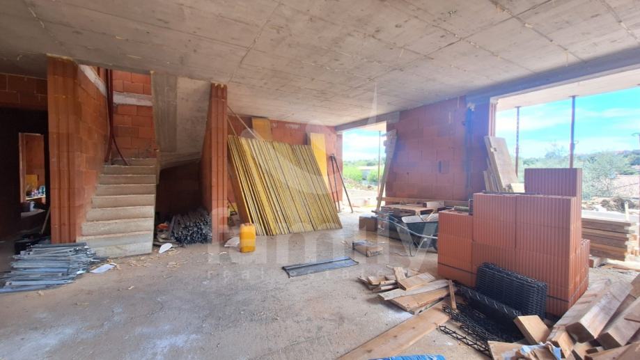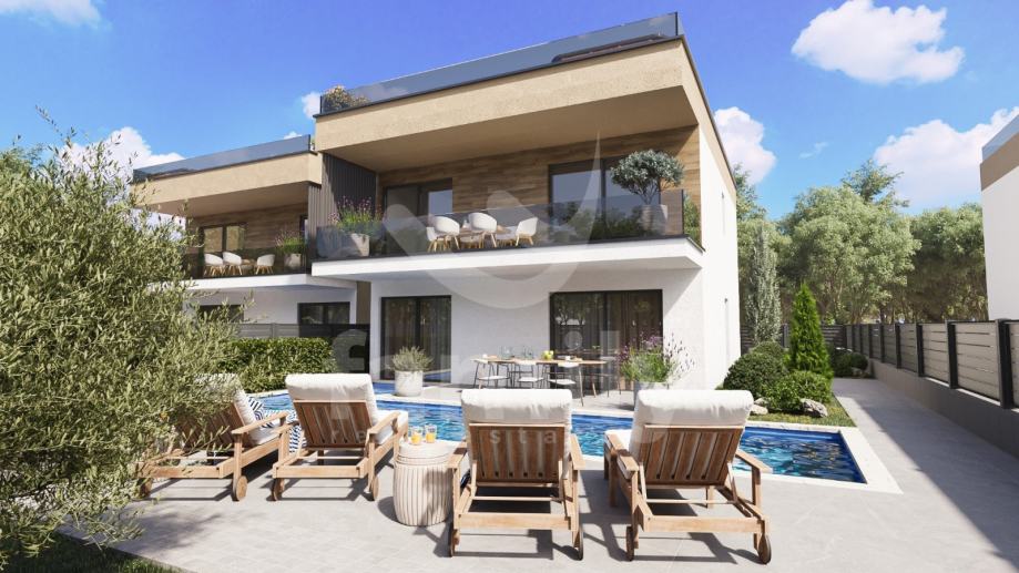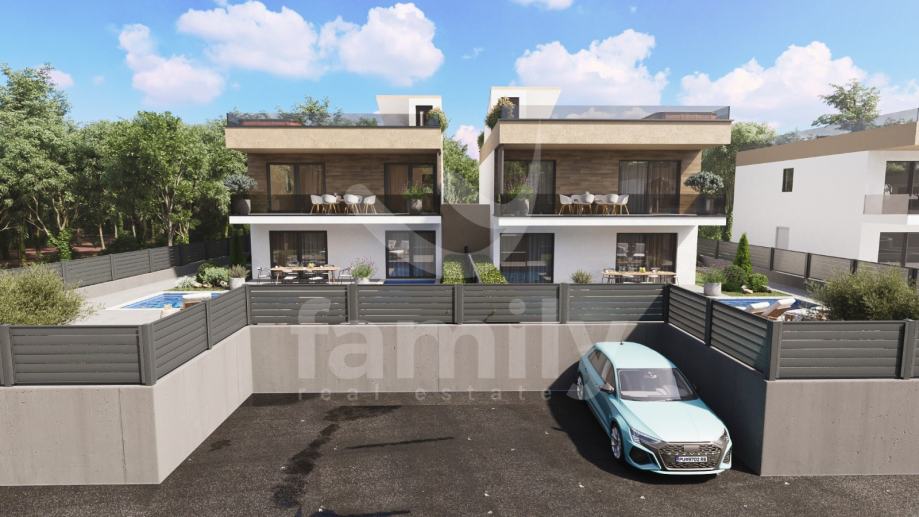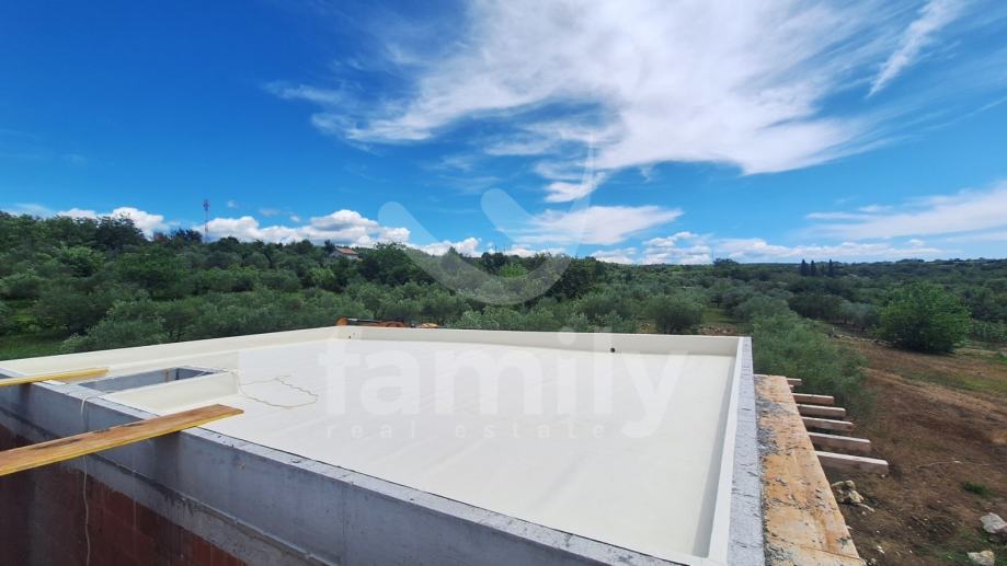 Upravo na veoma mirnoj lokaciji u Brtonigli nalazi se navedena dvojna kuća u izgradnji sa stambenom površinom od 139 m2. Kuća se proteže na dvije etaže te će se prizemlje iste sastojati od veoma prostranog dnevnog boravka open space koncepta spojenog sa kuhinjom i blagavaonicom sa izlazom na natkrivenu terasu kao i gostinjskim wc-om i spremištem. Na drugoj etaži kojoj će se prilaziti unutarnjim stepeništem predviđene su tri komforne spavaće sobe, svaka sa svojim kupatilom. Kući će također pripadati bazen površine 24 m2. Na cijelom objektu je planirana ugradnja PVC i ALU stolarije.