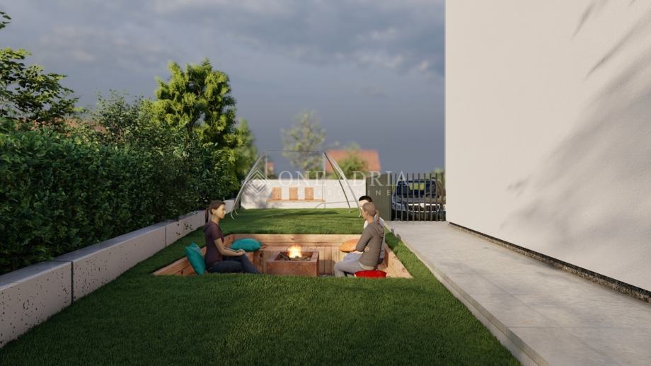 Stanu pripada okućnica ukupne površine 183,60 četvornih metara, koja uključuje uređeno dvorište od 107,25 četvornih metara i parkiralište površine 76,35 četvornih metara. Parkirno mjesto opremljeno je priključkom za električnu punionicu, što dodatno doprinosi suvremenom i ekološki odgovornom načinu života.