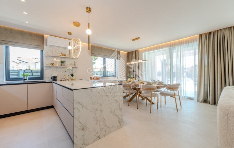 Prodaje se kompletno namještena i opremljena vrhunski dizajniranim interijerom.